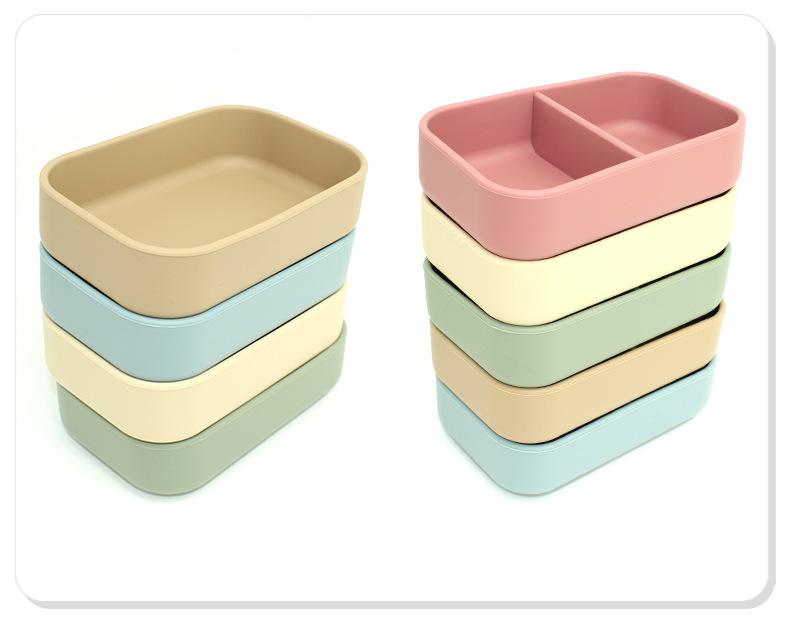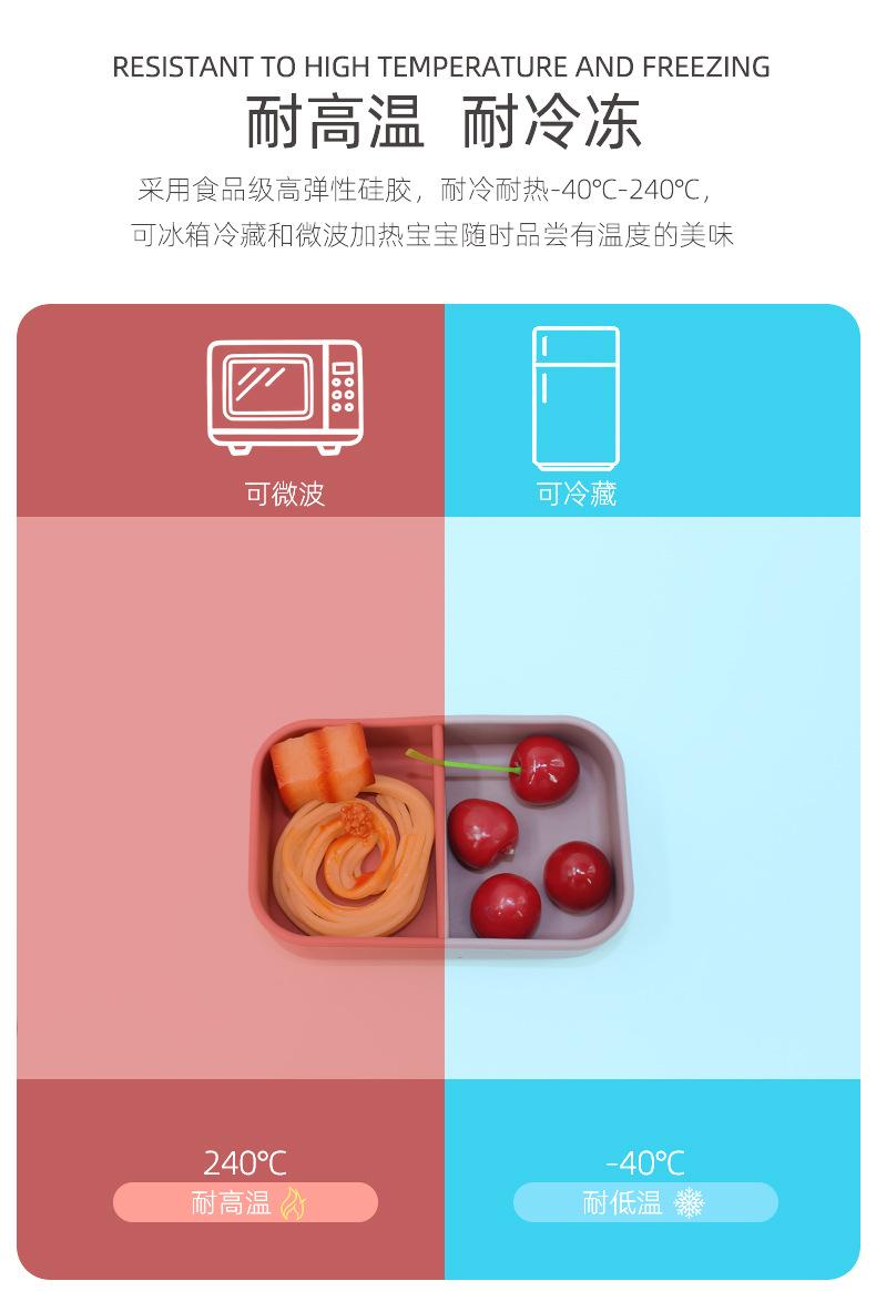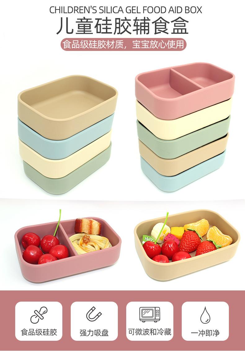 Plato de silicona para la cena de alimentación infantil, lonchera con cuatro ventosas pequeñas para que el bebé coma de forma independiente.