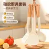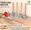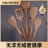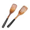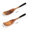 Set de Espátula y Cuchara de Madera de Acacia Resistente a Altas Temperaturas, para Sartén Antiadherente, Negro, Mango Largo, Espátula de Madera, Espátula Perforada, Cuchara para Sopa, Utensilios de Cocina