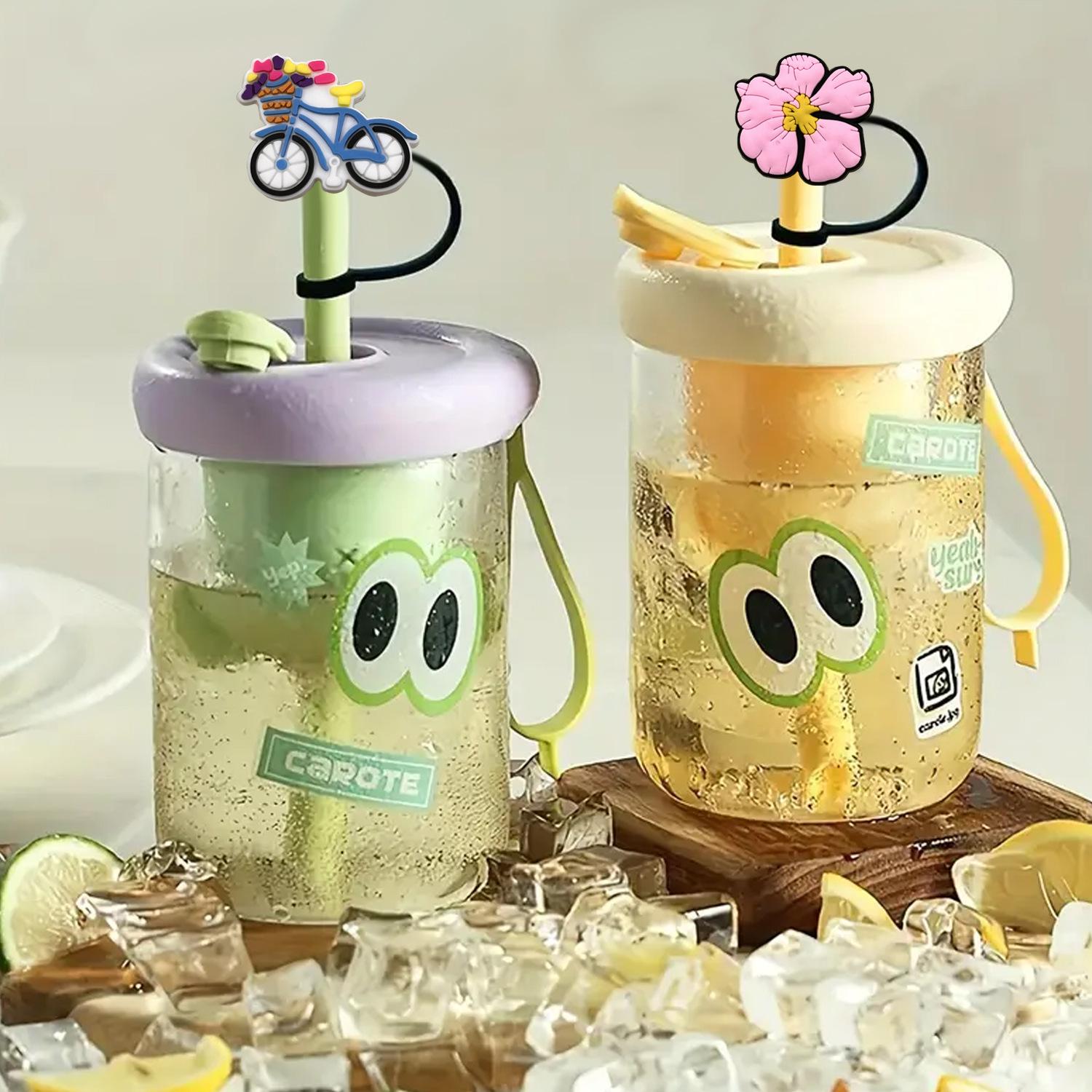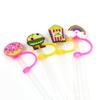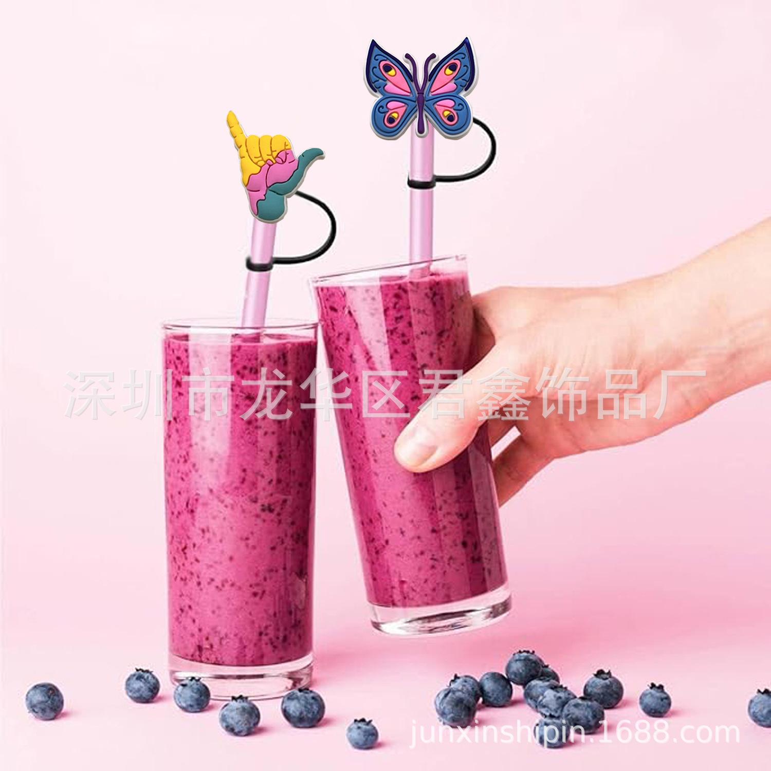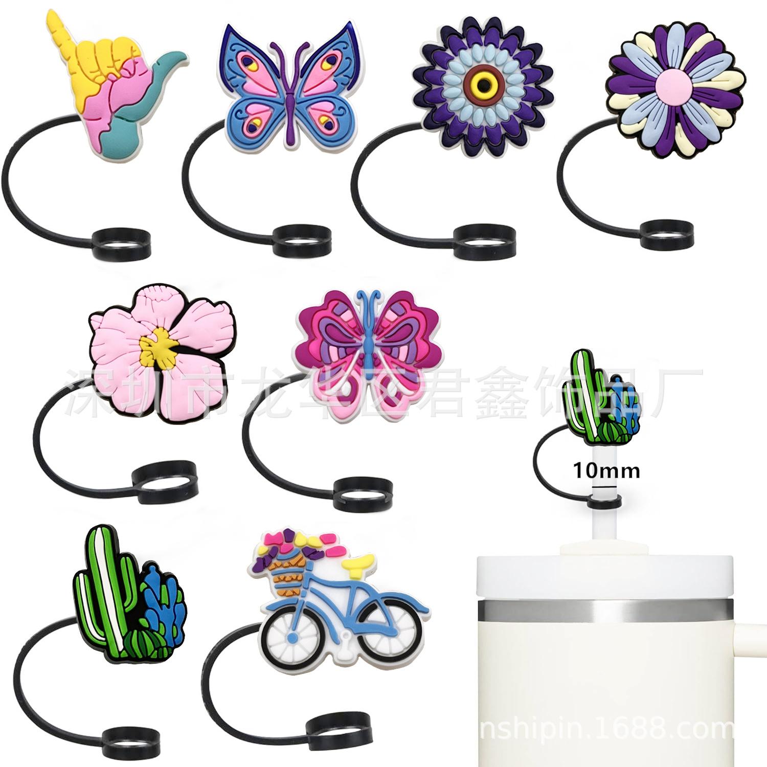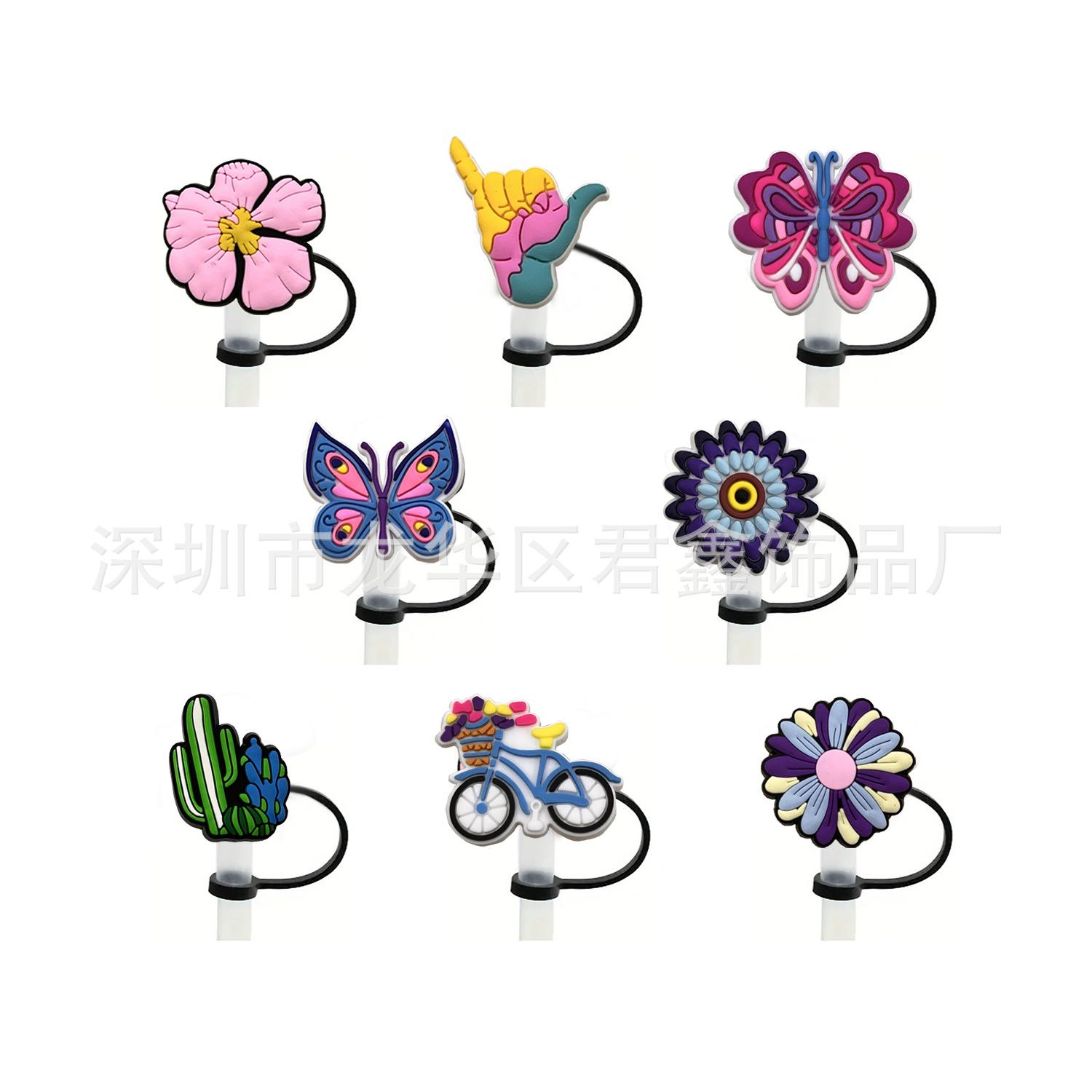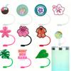 Explosiones transfronterizas Flores de verano Dibujos animados Tubo de succión Manga Tapa de succión Silicona/Goma suave Tapón antipolvo Linda paja decorativa