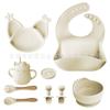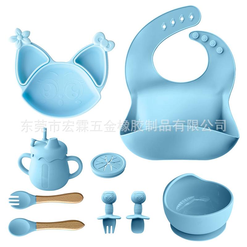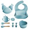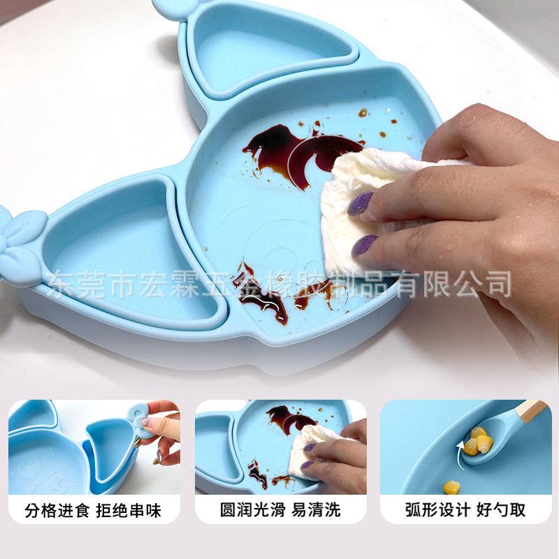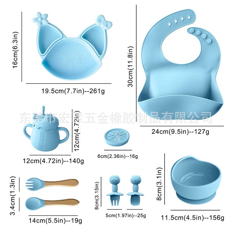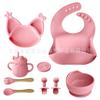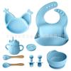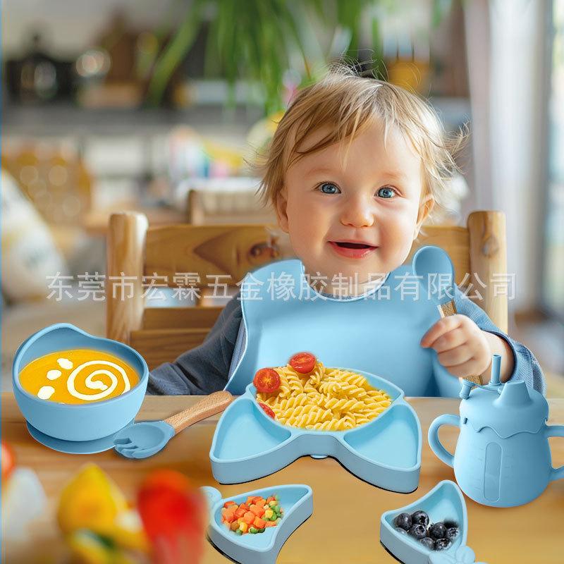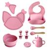 Vajilla completa para bebé, con ventosa integrada, plato dividido, cuenco de silicona para comida de bebé, babero, tenedor, cuchara, cuenco de entrenamiento para niños