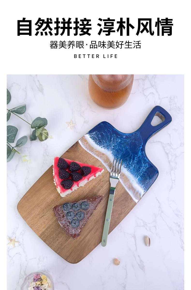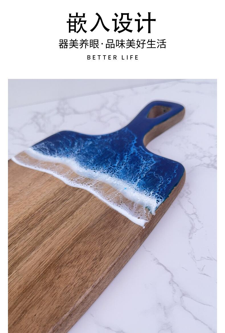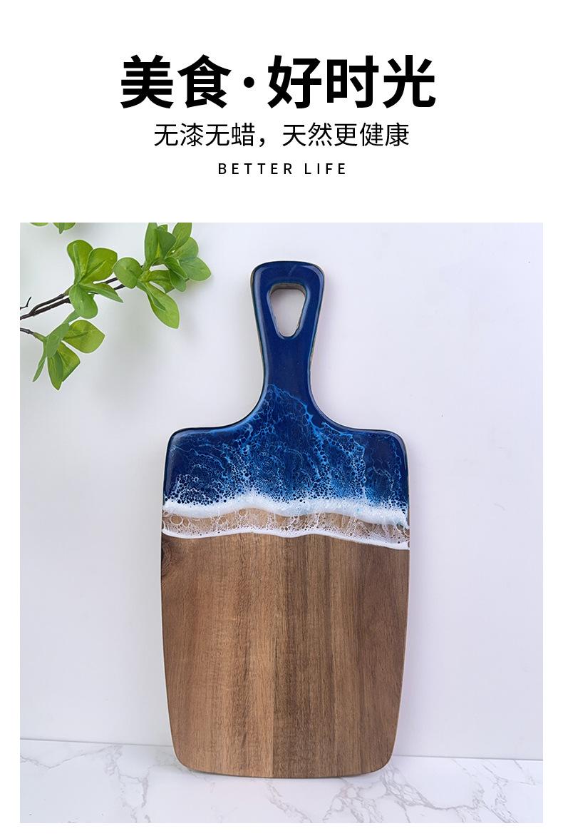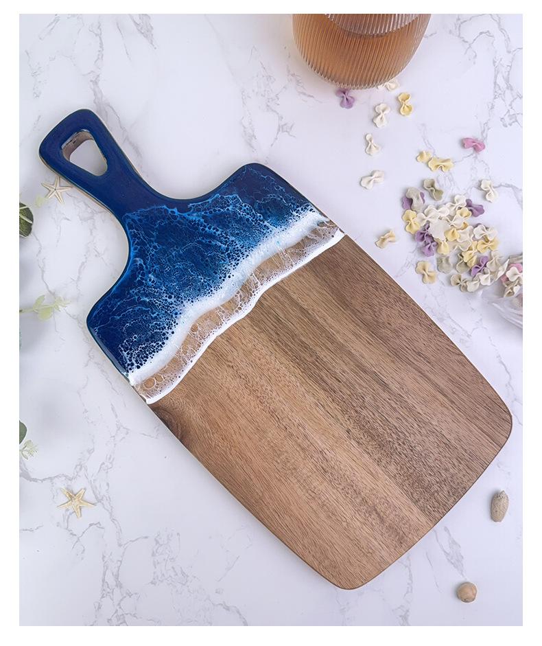 Tabla de Corte de Resina Ondulada Transfronteriza Madera Maciza con Asa Madera de Acacia Tabla de Quesos Tabla de Cortar para Bistec Occidental Tabla para Cortar Fruta