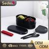 Fiambrera Rectangular de Plástico Sellada con Tapa, Tenedor y Cuchara, Caja de Almacenamiento para Congelador de Grado Alimenticio