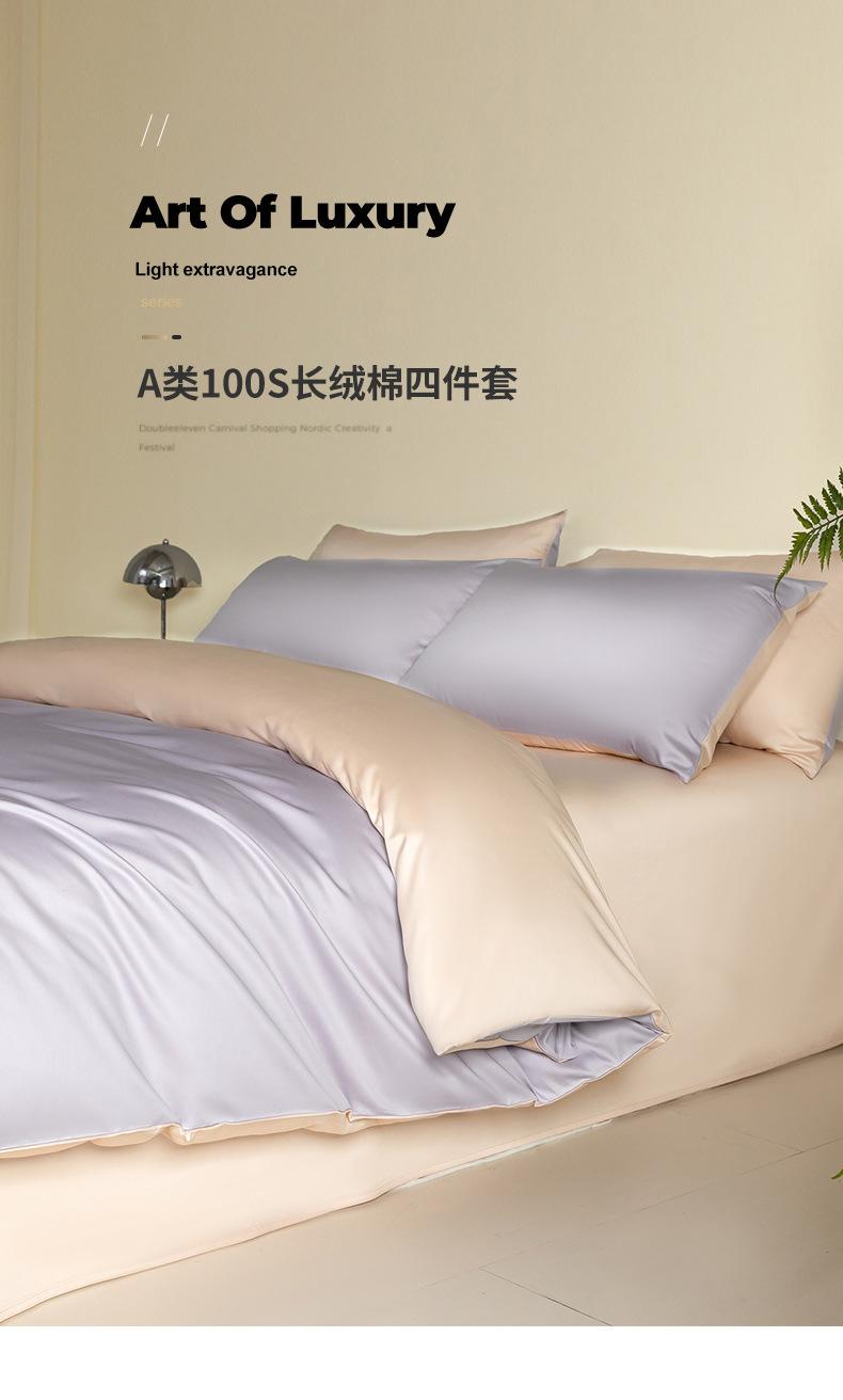 Juego de cuatro piezas de algodón 100 A, ropa de cama de lujo de color sólido, edredón, sábanas, juego de cuatro piezas de algodón de fibra larga de Xinjiang