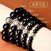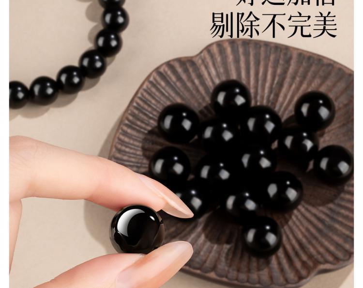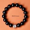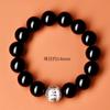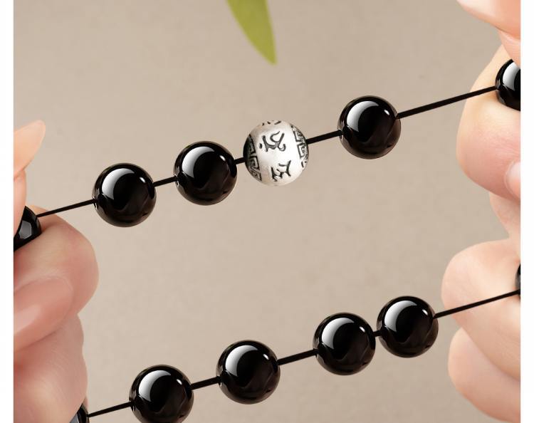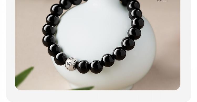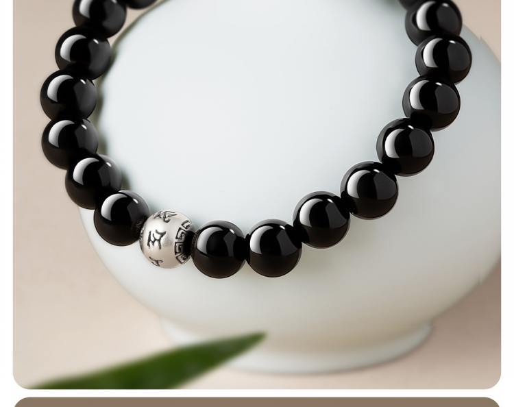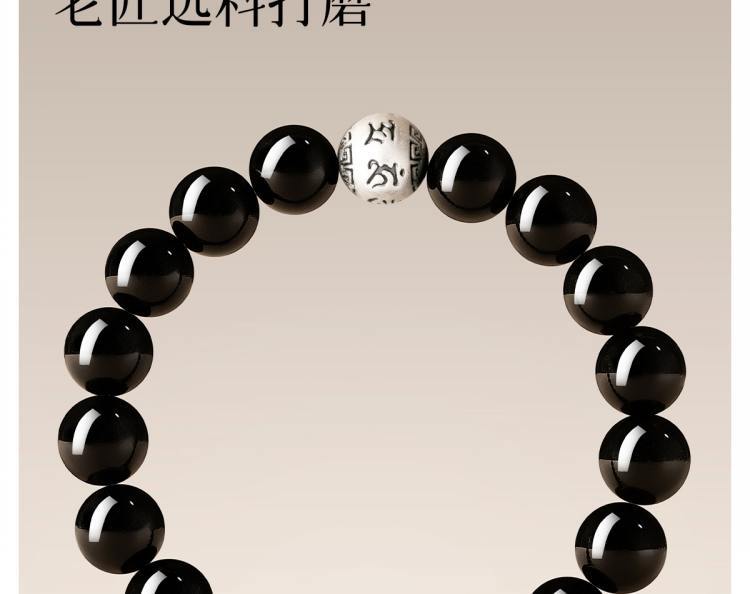 (black gold obsidian 999 pure silver six-character motto transfer beads) bead diameter is about 8 mm, (black g...