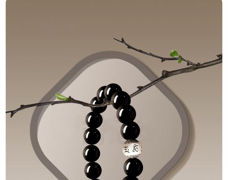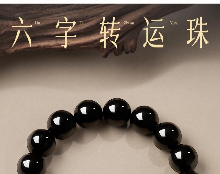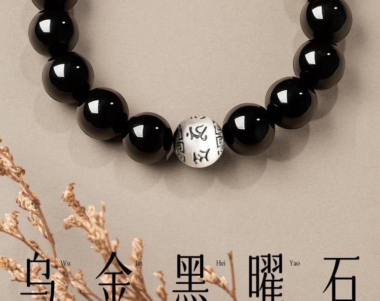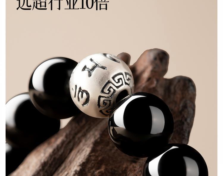 (black gold obsidian 999 pure silver six-character motto transfer beads) bead diameter is about 14 mm