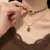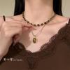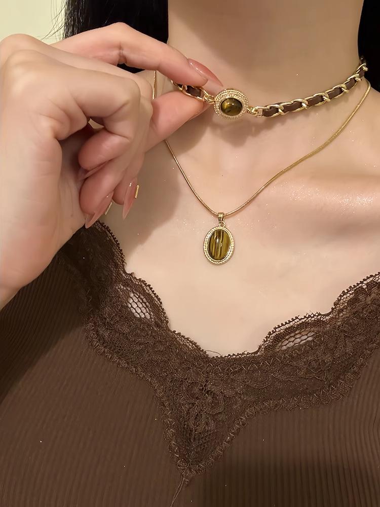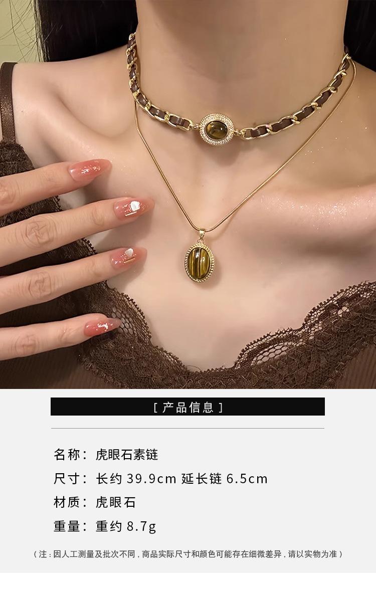 Collar de ojo de tigre apilado de doble capa retro de otoño e invierno 2024 para mujer, cadena de clavícula de nicho de lujo ligero y de alta gama.
