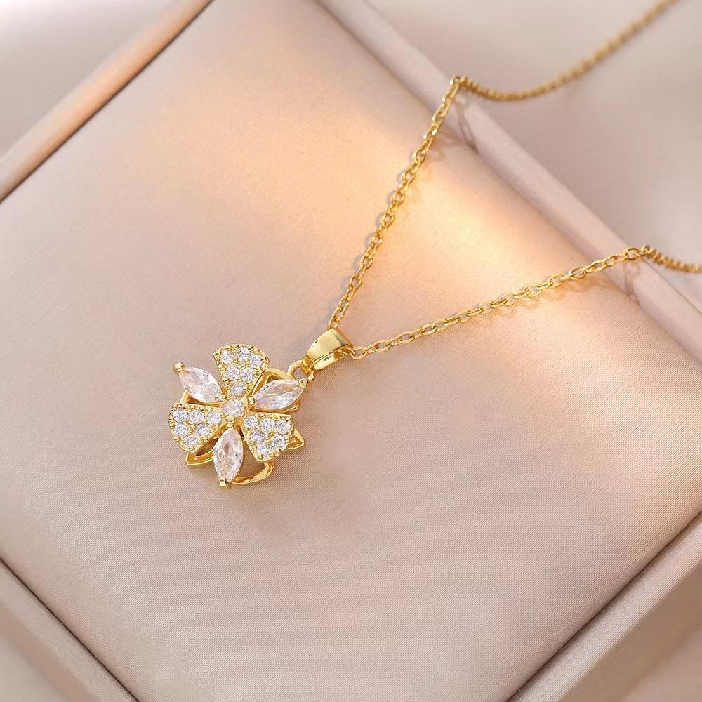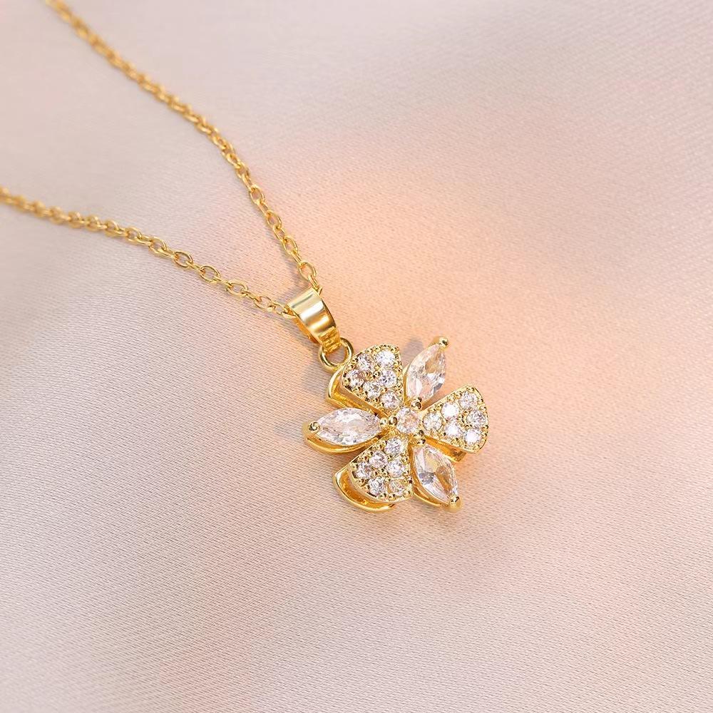 Collar Femenino Celebridad de Internet Transfronterizo Collar de Flor Giratorio Nicho Cadena Clavícula Cobre Micro-Incrustado Collar de Cuello Giratorio Accesorios