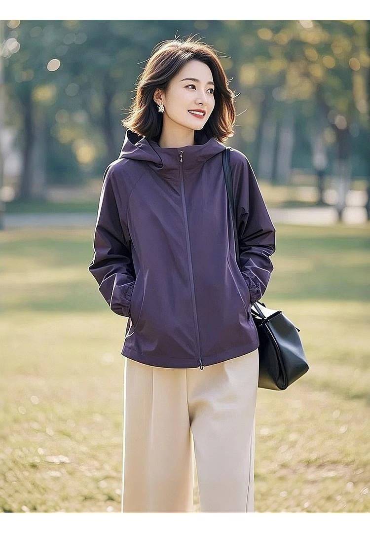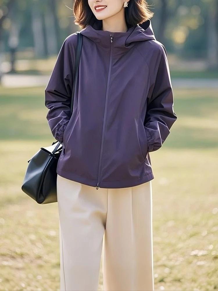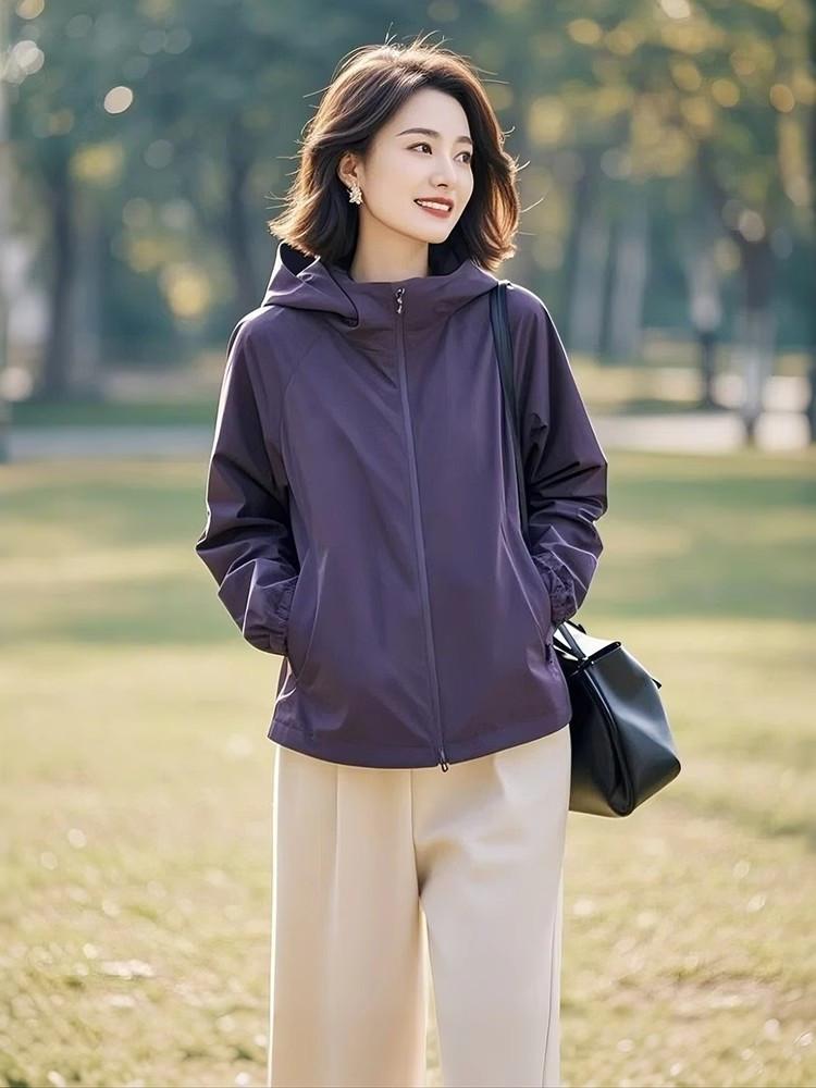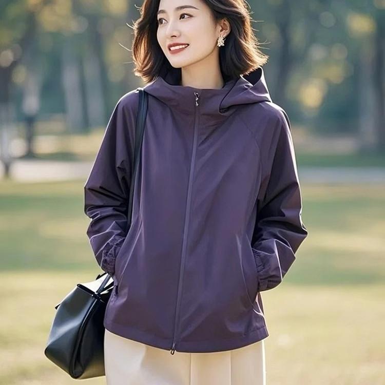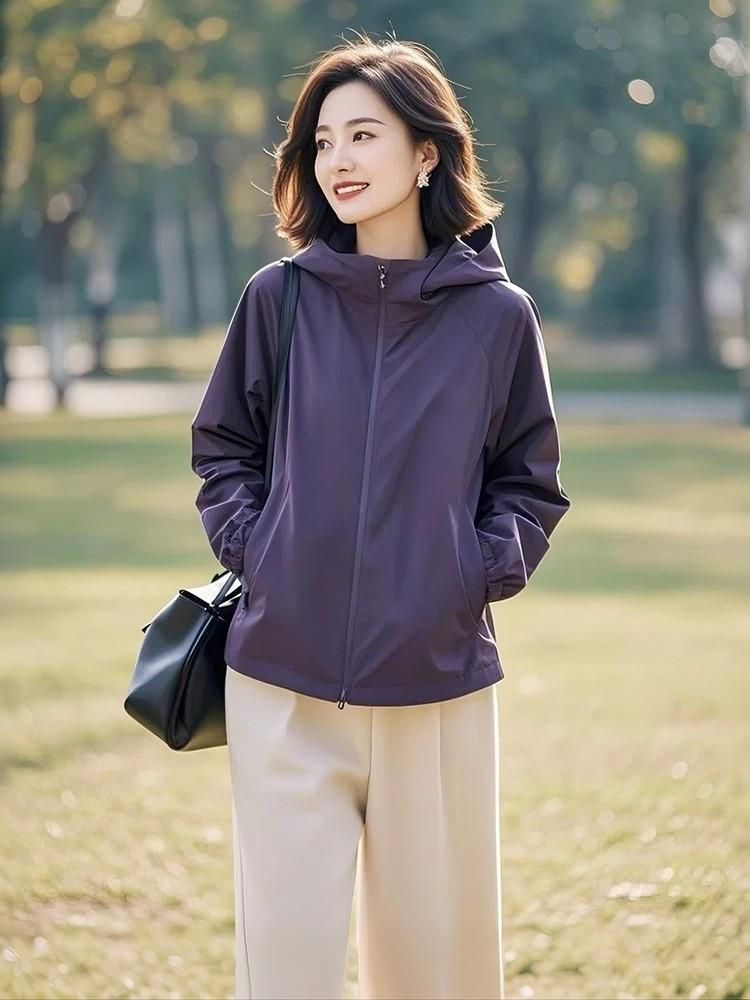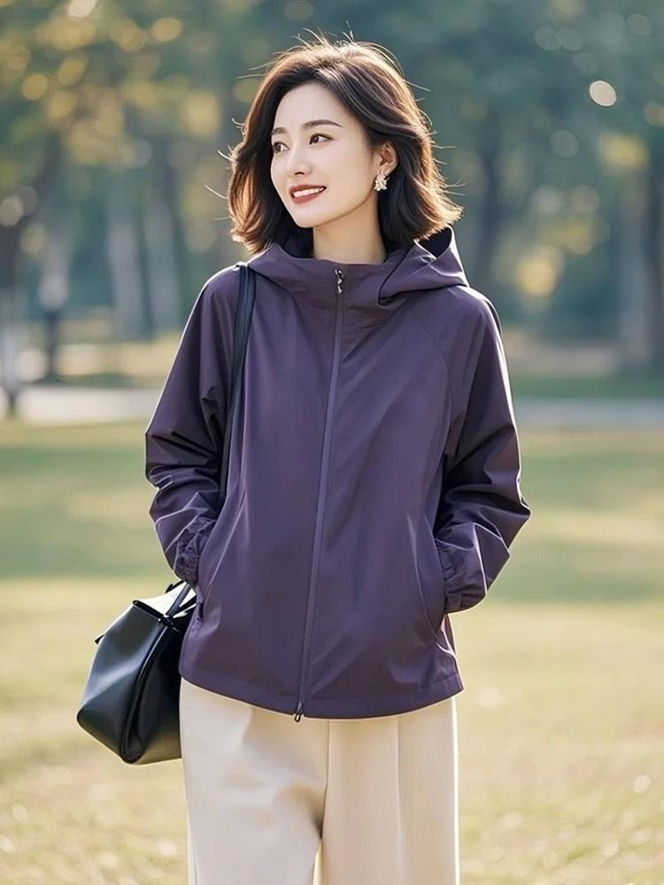 Abrigo de primavera y otoño para mujer 2025, nueva moda, único, hermoso, pequeño, diseño suelto, abrigo morado para mujer de principios de primavera.