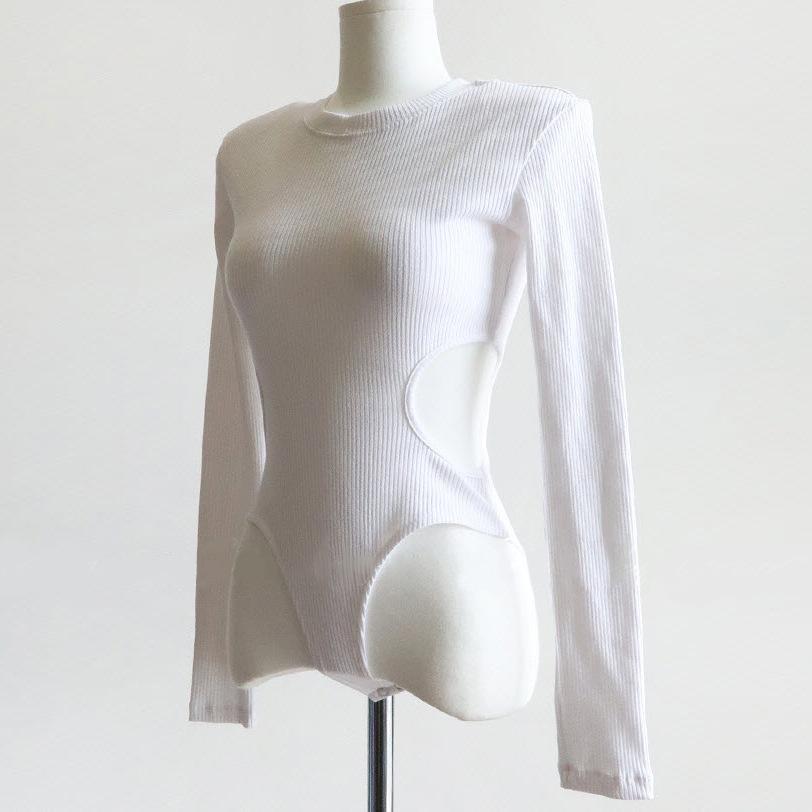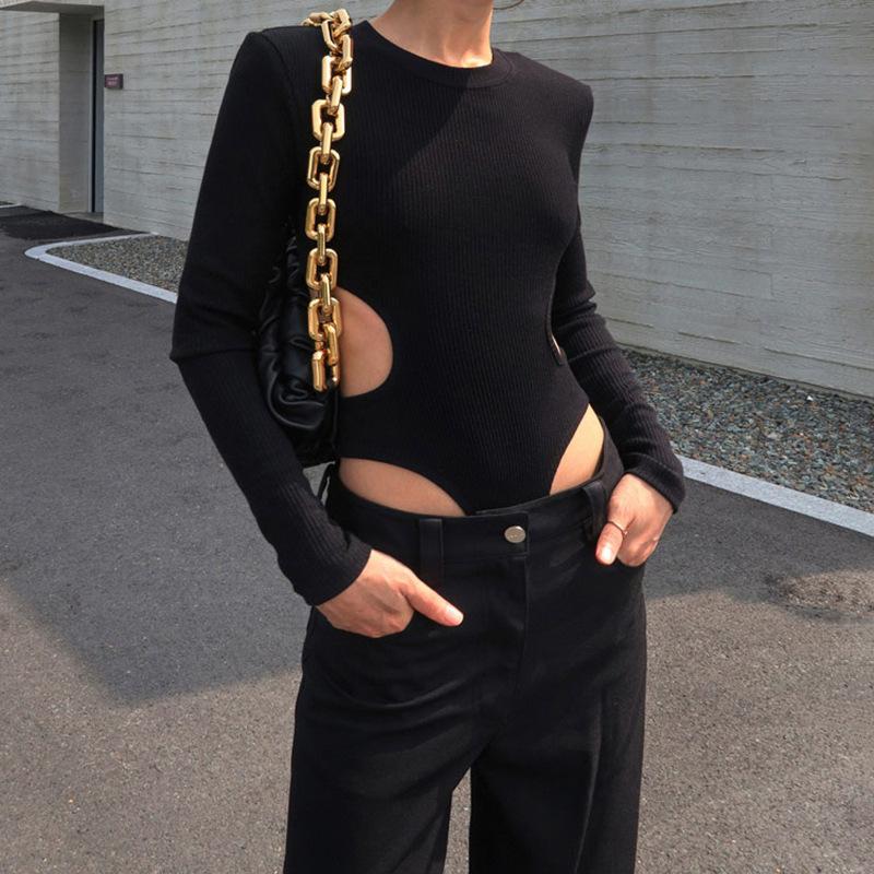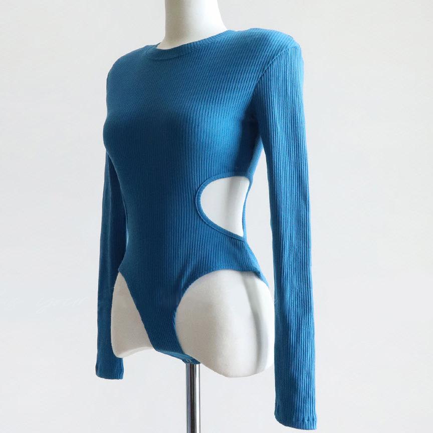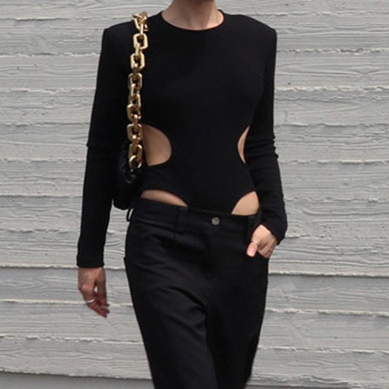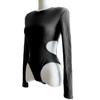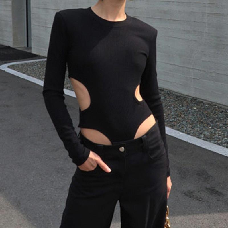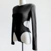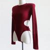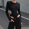 Europeo y Americano Transfronterizo Sexy Trendy Versátil Ajustado Spice Girls Adelgazante Calado Cuello Redondo Tejido Manga Larga