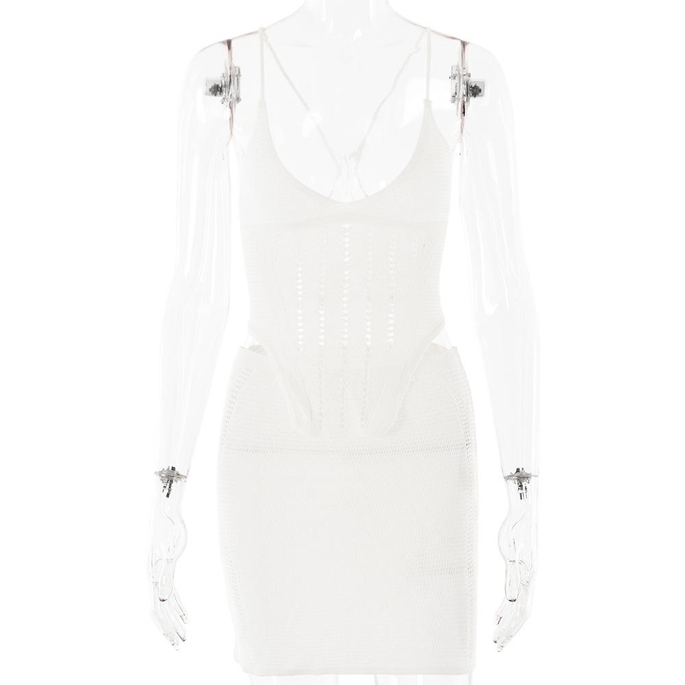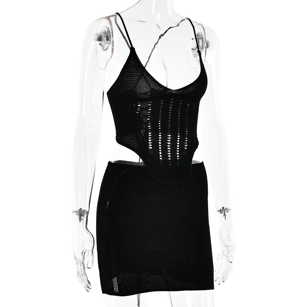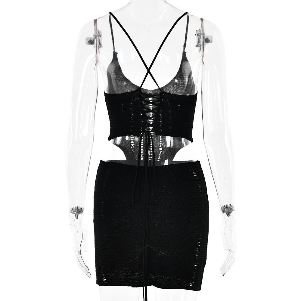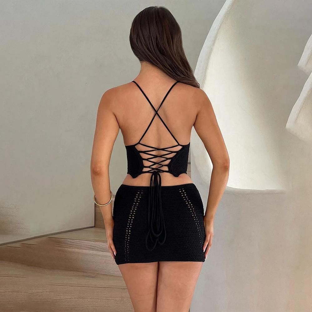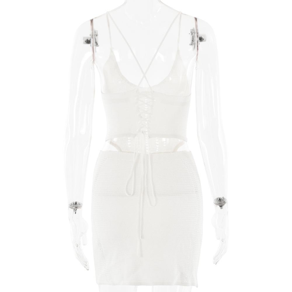 2048 Europeo y Americano Transfronterizo Verano Nuevo Dos Piezas Sexy Moda Tirantes Espalda Descubierta Falda Corta Traje de Punto Exportación