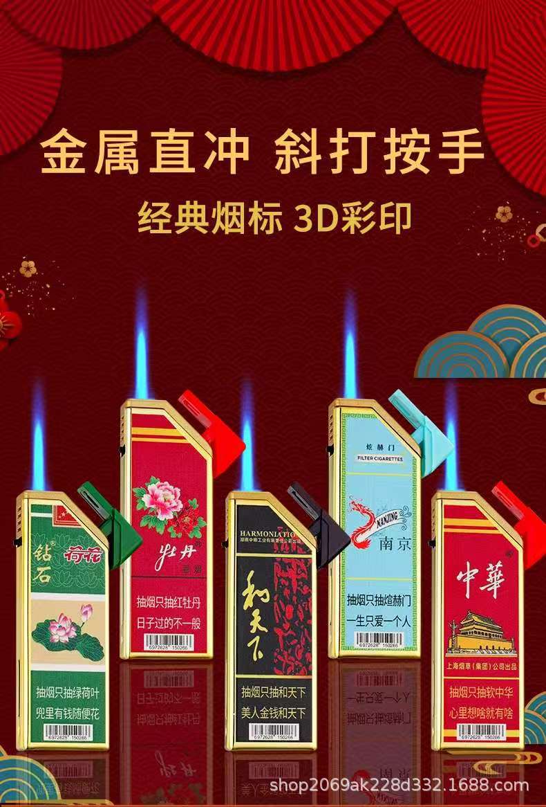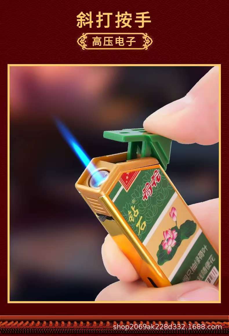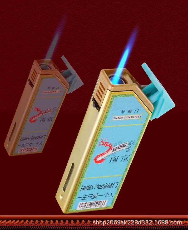 Encendedor inflable de metal nuevo, con personalidad de llama azul, a prueba de viento, venta al por mayor, logotipo personalizado, encendedor publicitario