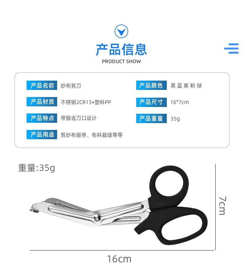 Tijeras de Gasa de Acero Inoxidable con Mango de PP Supervivencia Vendaje Lona Tijeras para Exterior Hogar EMT Tijeras Médicas