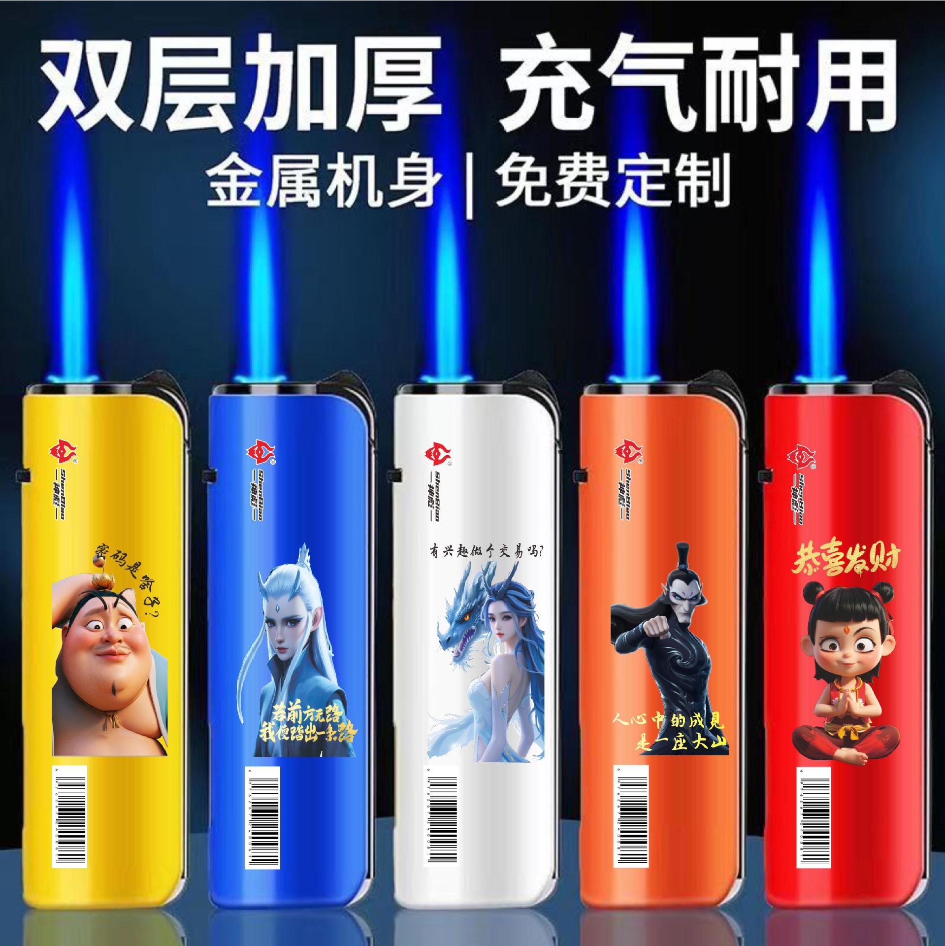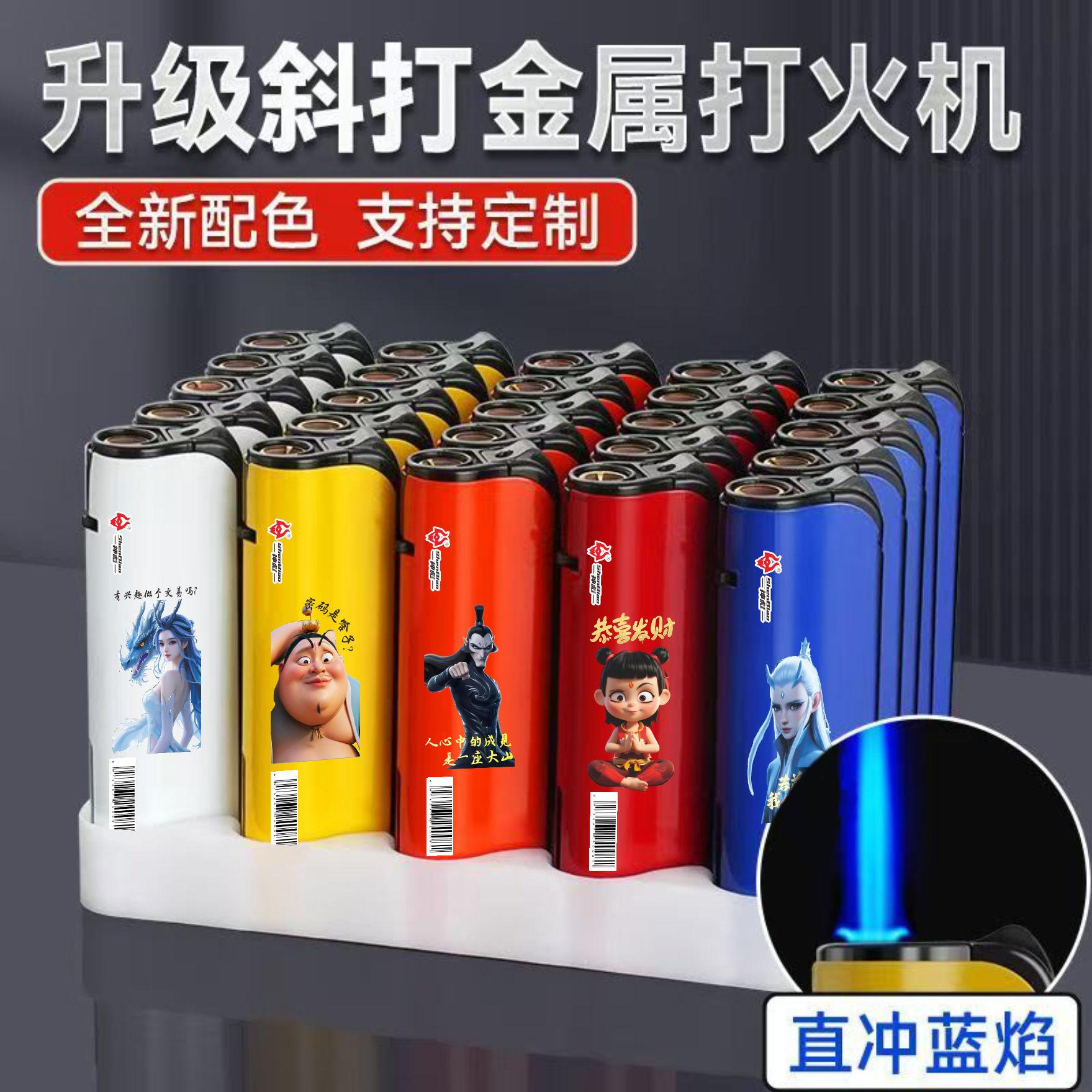Alto Valor Yan Nuevo Creativo Oblicuo Metal Viento Directo Encendedor a Prueba de Viento Marea Nacional Inflable Comerciantes Súper Hogar Venta al por Mayor