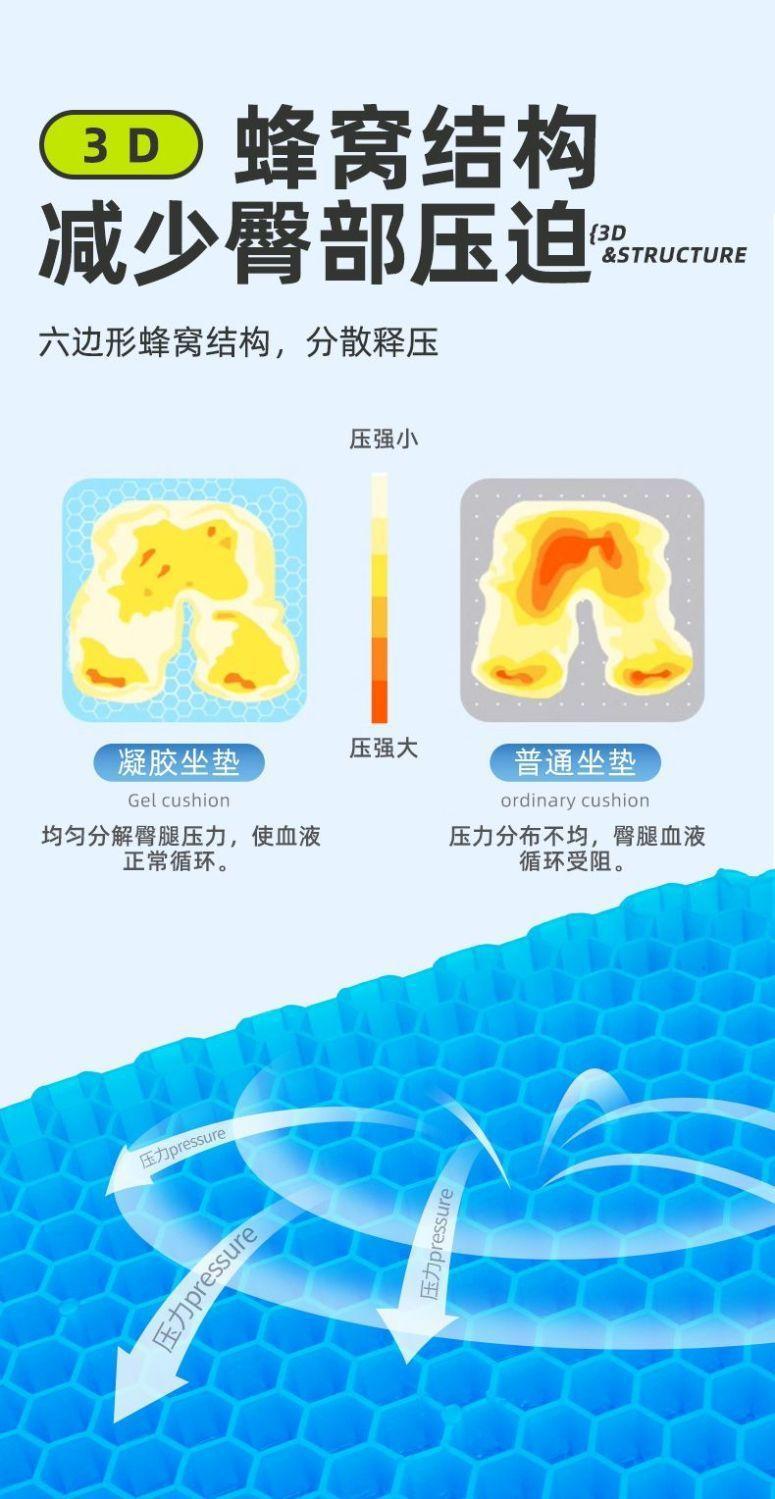 Cojín de Gel Silla de Verano Oficina Sedentaria Engrosado Cojín para Silla de Coche Cojín de Hielo Cojín de Asiento Cojín de Hielo de Silicona Panal