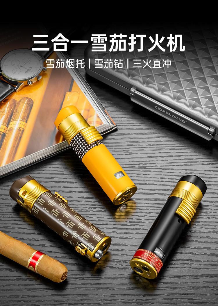Encendedor de Cigarros Tres-En-Uno Multifuncional Aleación Encendedor Soporte para Cigarros Taladro Oculto para Cigarros Cb-24K5
