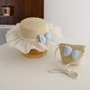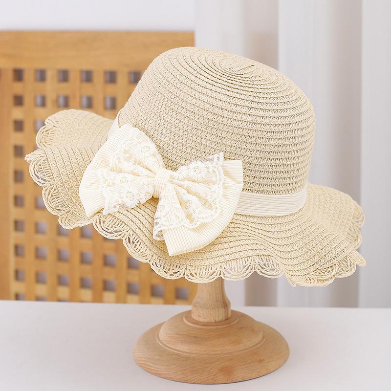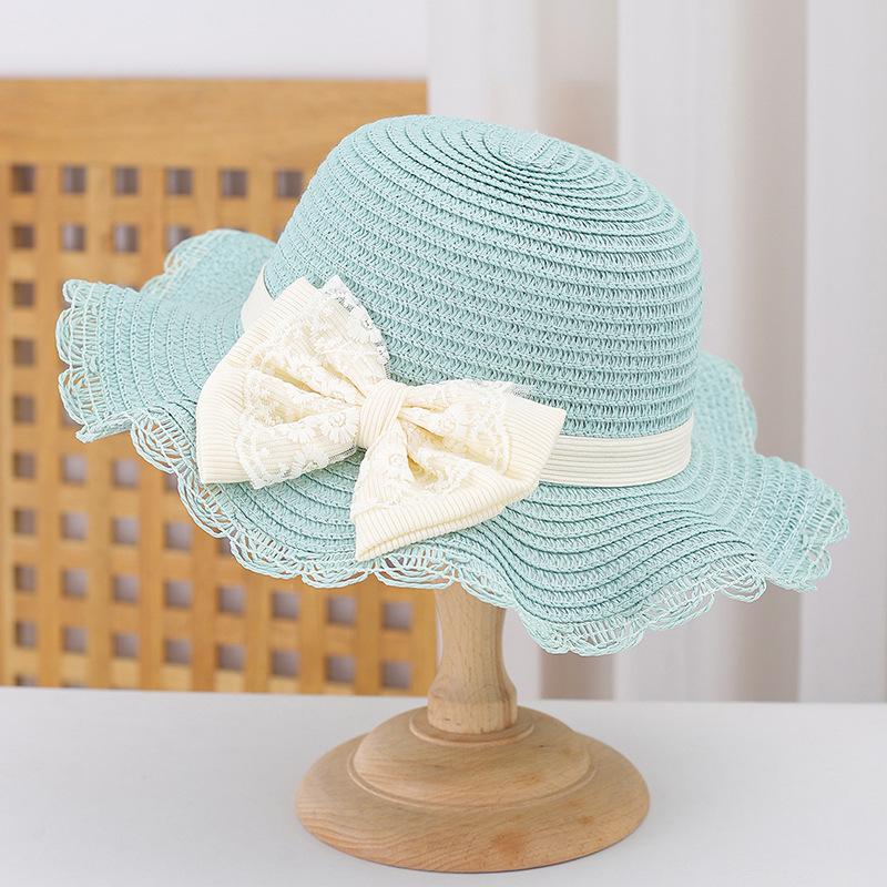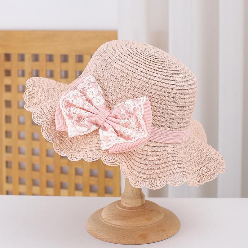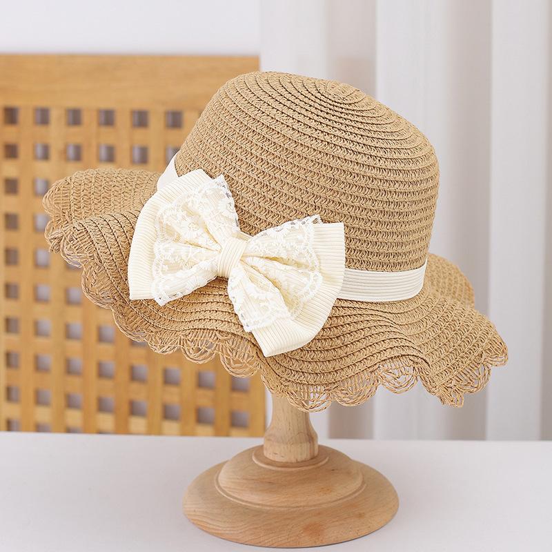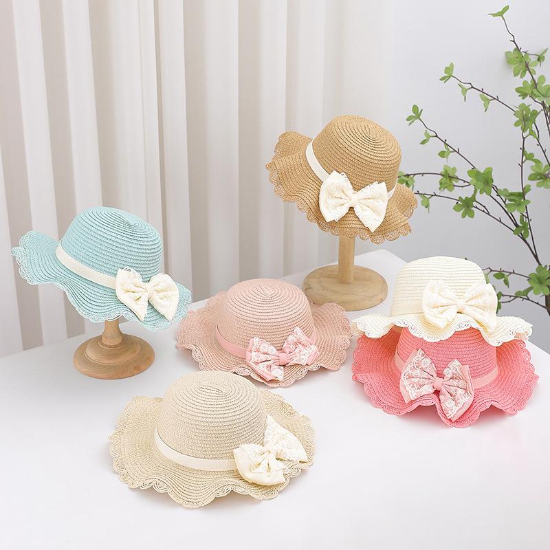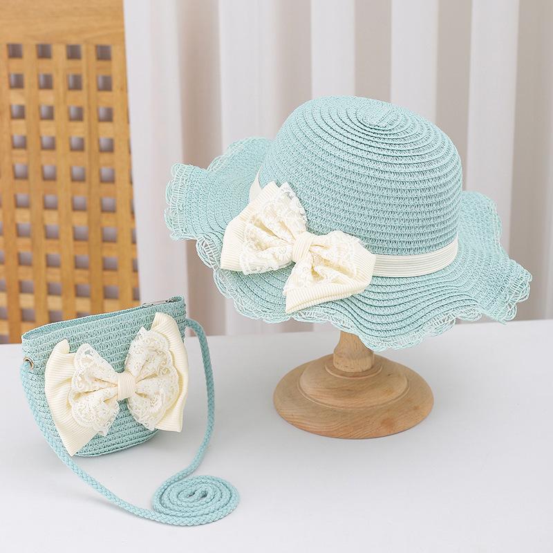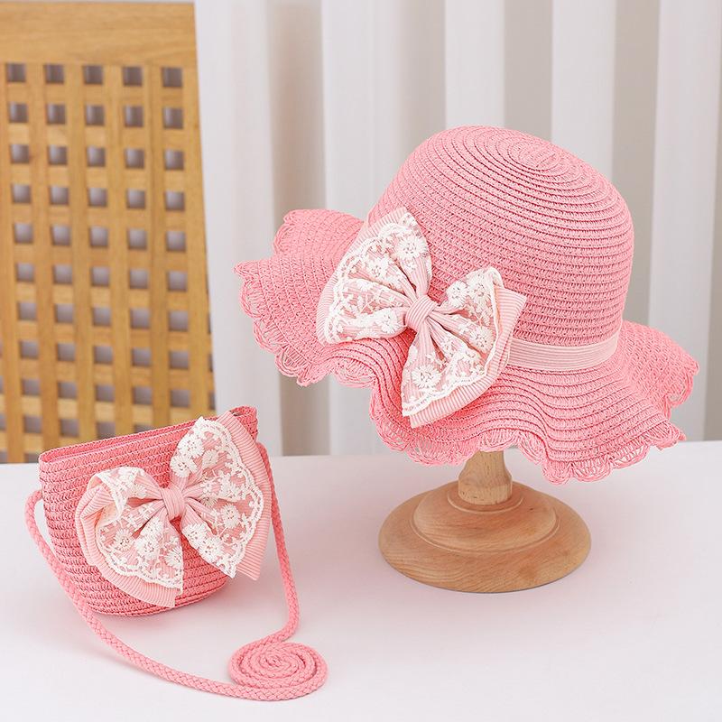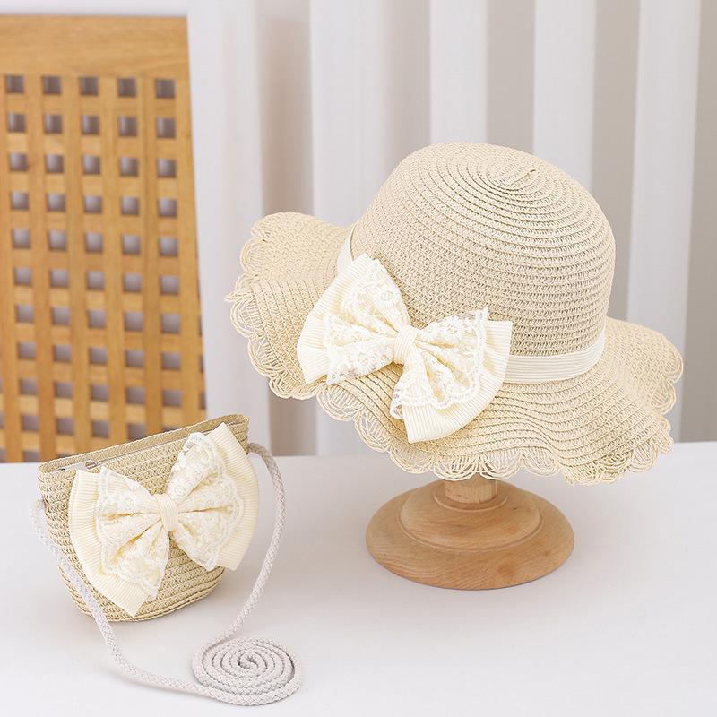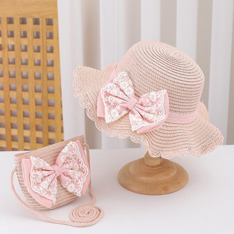 Sombrero de Paja para Niños con Lazo de Encaje de Estilo Fresco Sombrero de Playa con Protección Solar para la Pequeña Princesa Sombrero de Sol de Verano Traje de Bolso Pequeño
