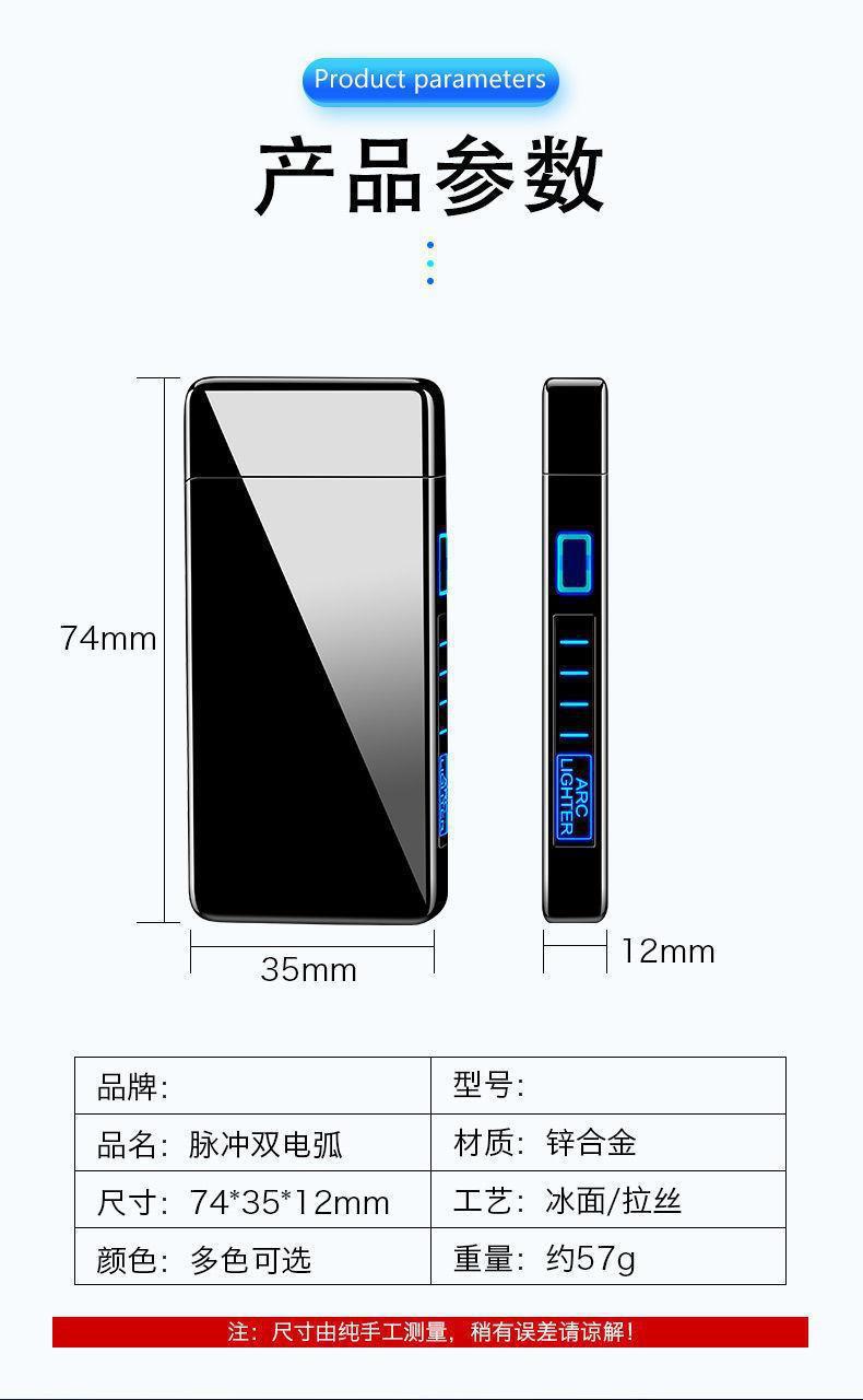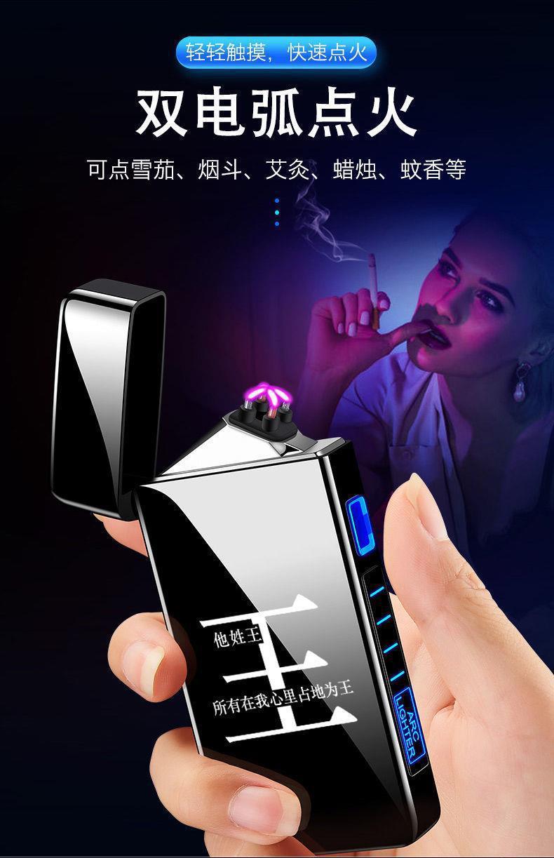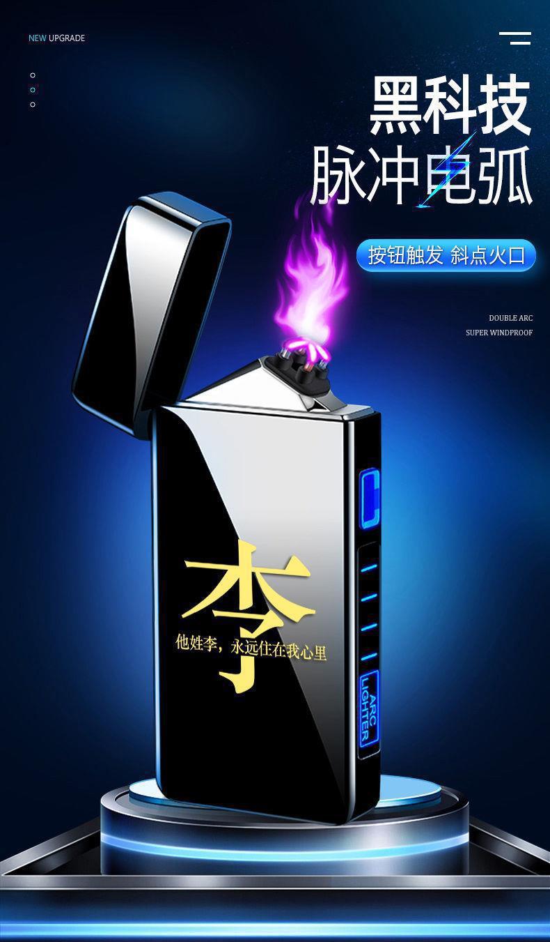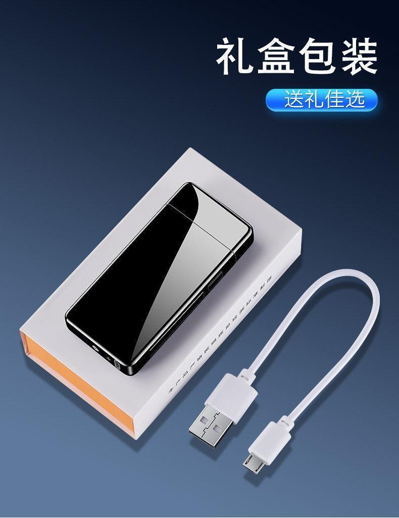Encendedor de carga Baijiaxing silencioso a prueba de viento, encendedor silencioso de doble arco, caja de regalo duradera para novio