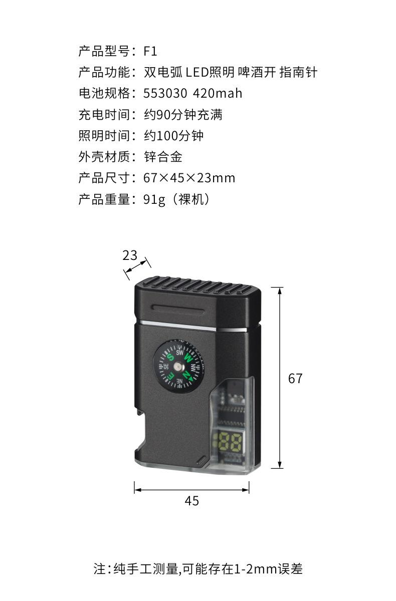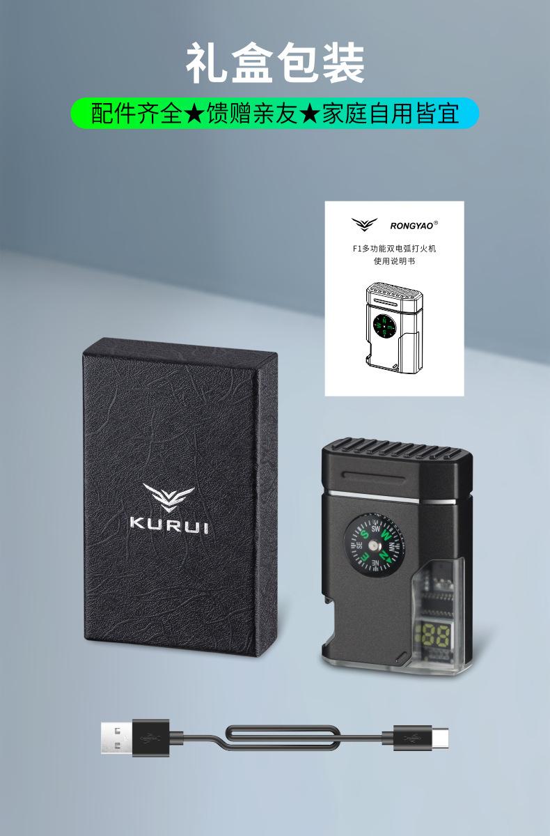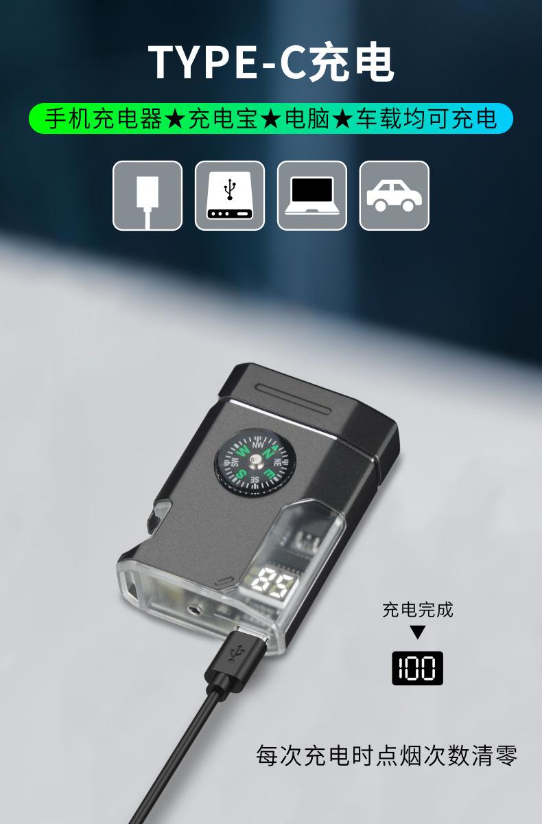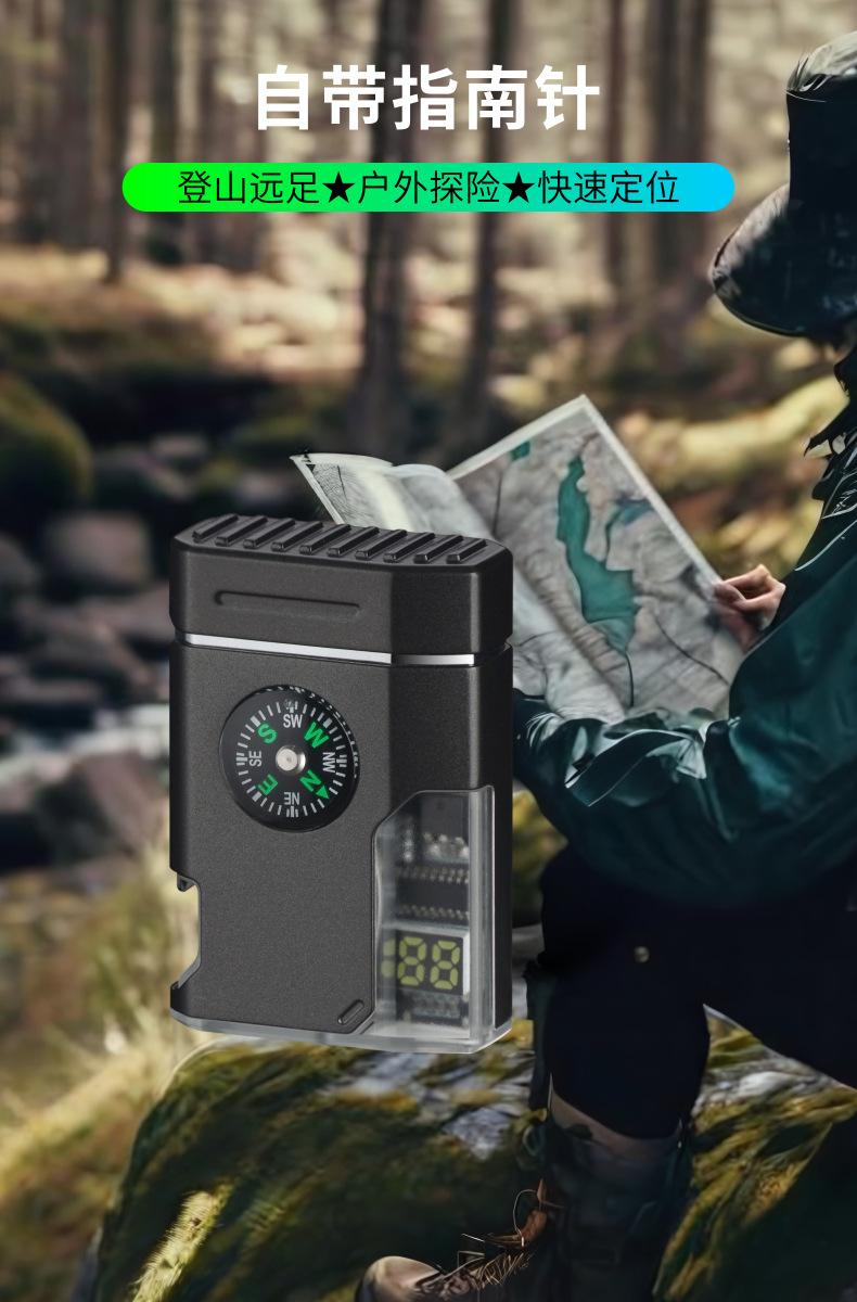 Nuevo encendedor de carga de doble arco, a prueba de viento, con brújula para exteriores, abridor de botellas, luz portátil, pantalla de energía