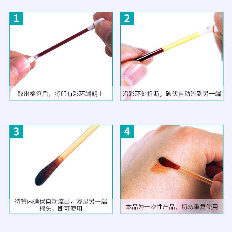 Hisopos de Algodón con Yodóforo Desechables para el Hogar Empaque Portátil Independiente Rompible Hisopos de Algodón Limpiadores Hisopos de Algodón Desinfectantes