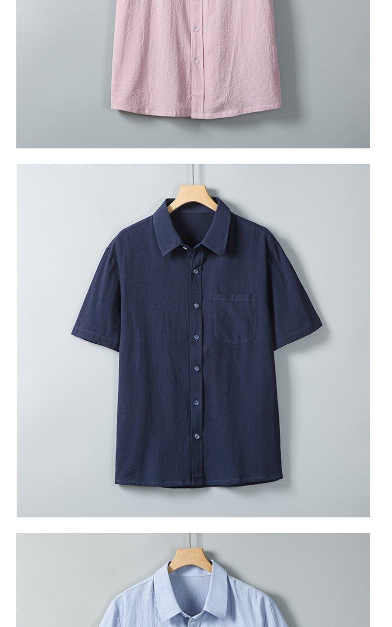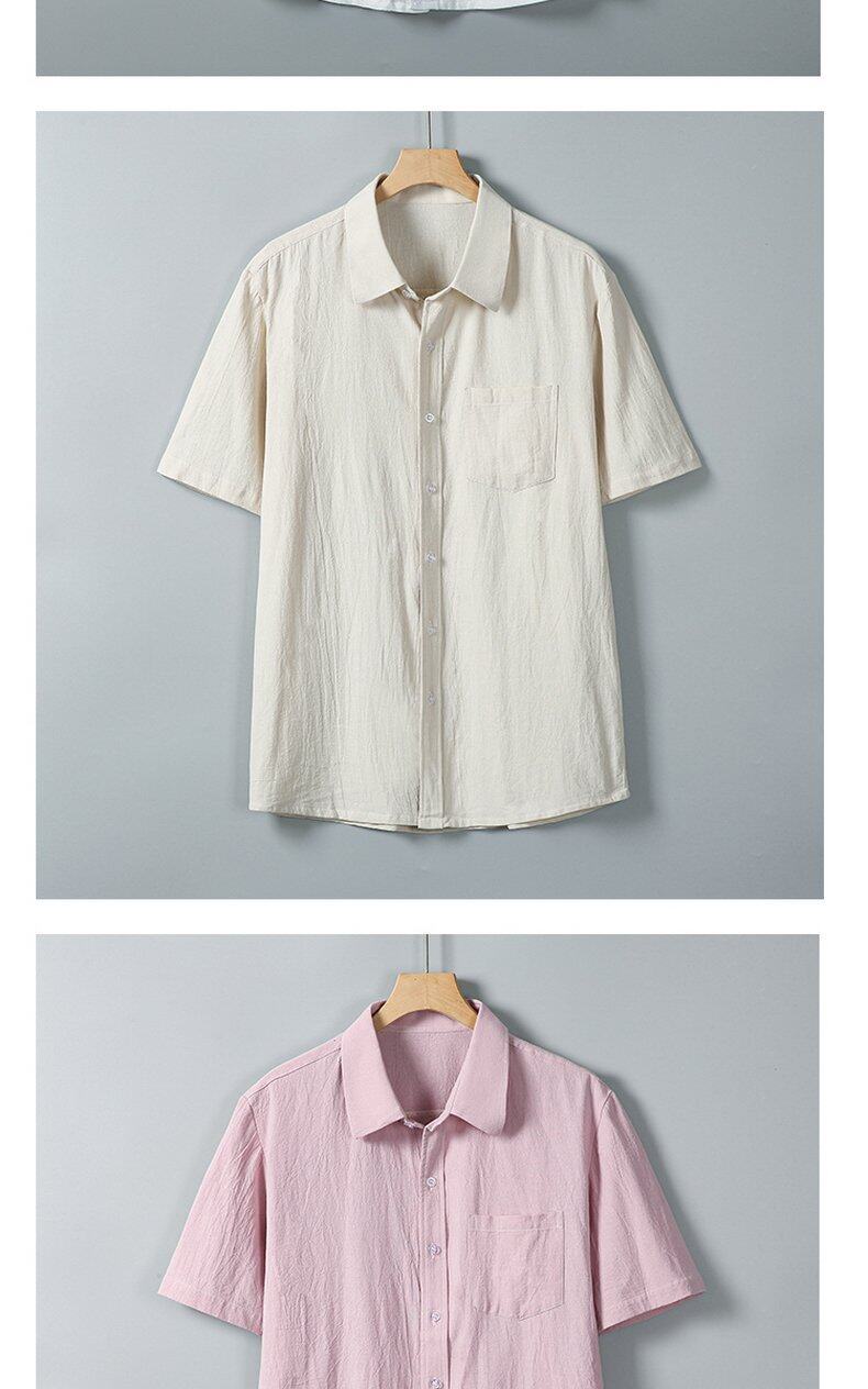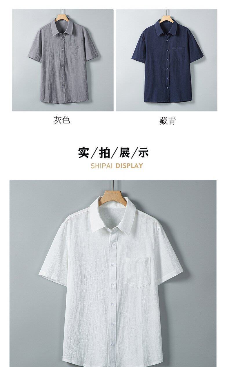 Verano 2025 Nueva Camisa Simple de Hombre Camisa de Manga Corta Camisa de Media Manga Algodón Lino Cuello Camisa Casual Top Moderno Mayoreo
