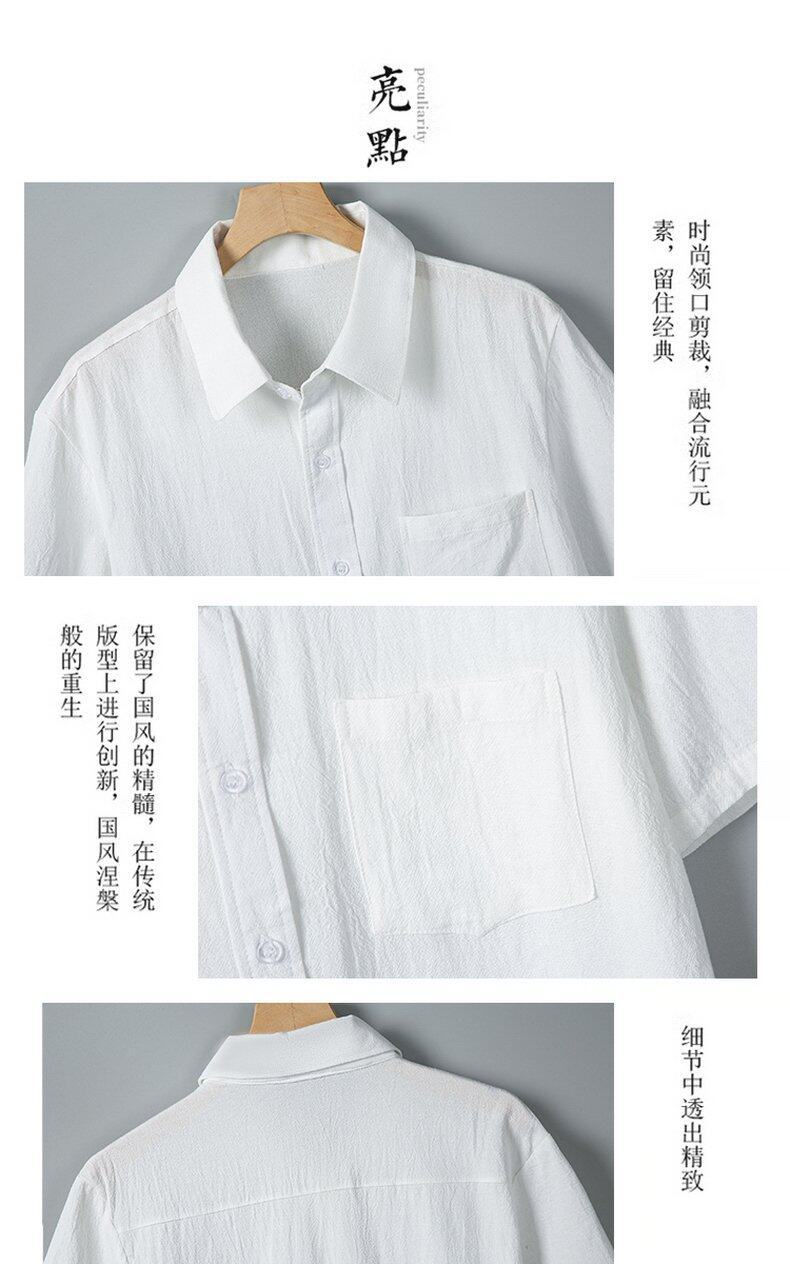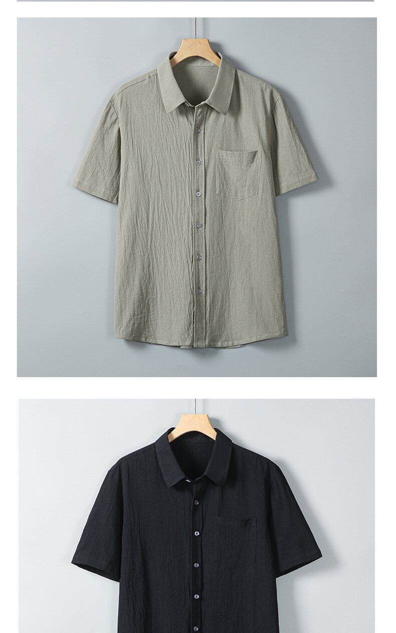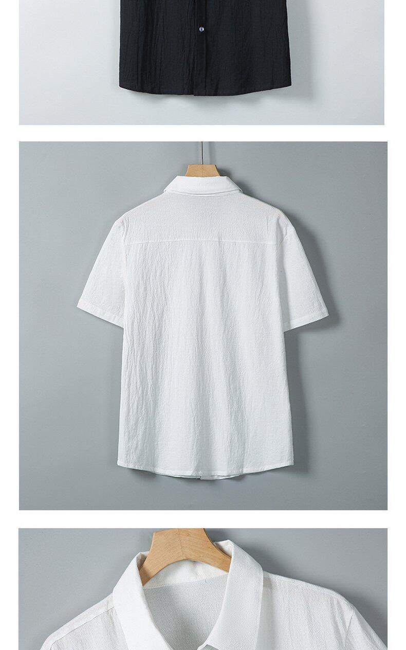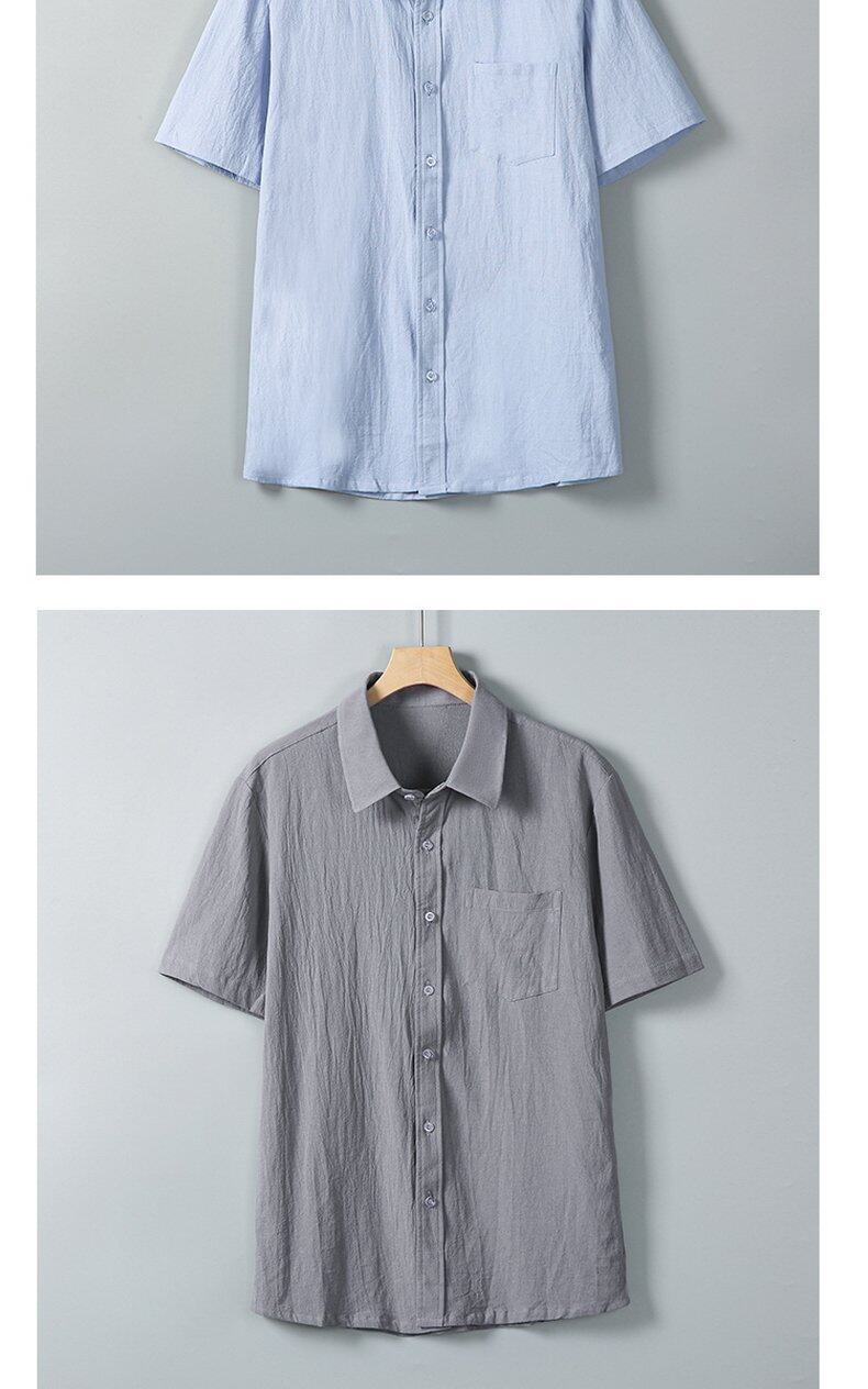 Verano 2025 Nueva Camisa Simple de Hombre Camisa de Manga Corta Camisa de Media Manga Algodón Lino Cuello Camisa Casual Top Moderno Mayoreo