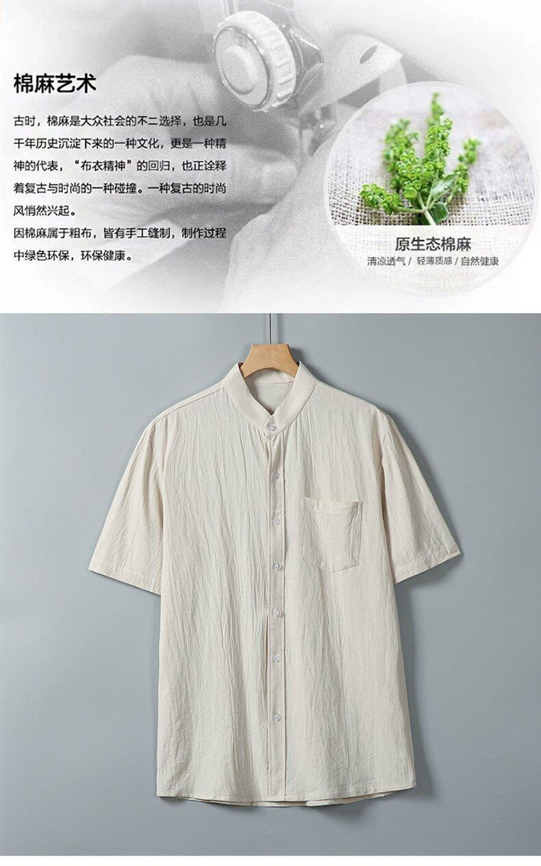 Verano 2025 Nueva Camisa Simple de Moda para Hombre Camisa de Manga Corta Camisa de Media Manga Algodón Lino Cuello Camisa Casual Top