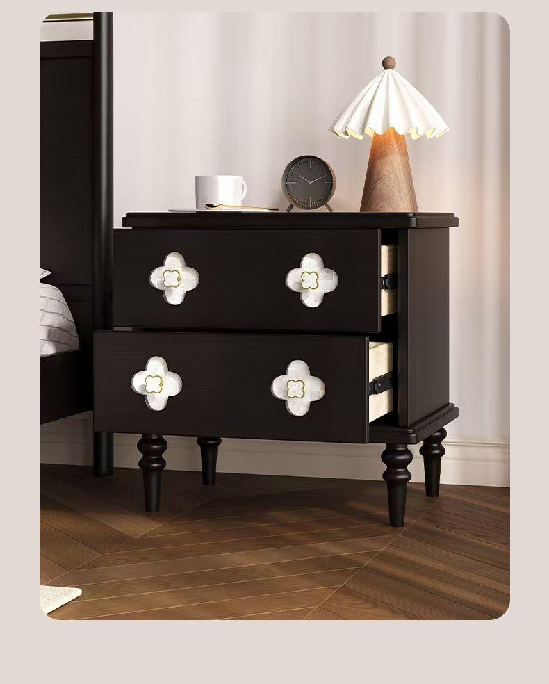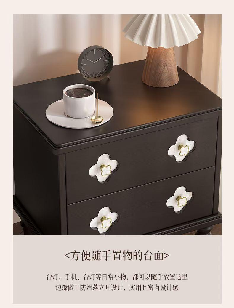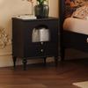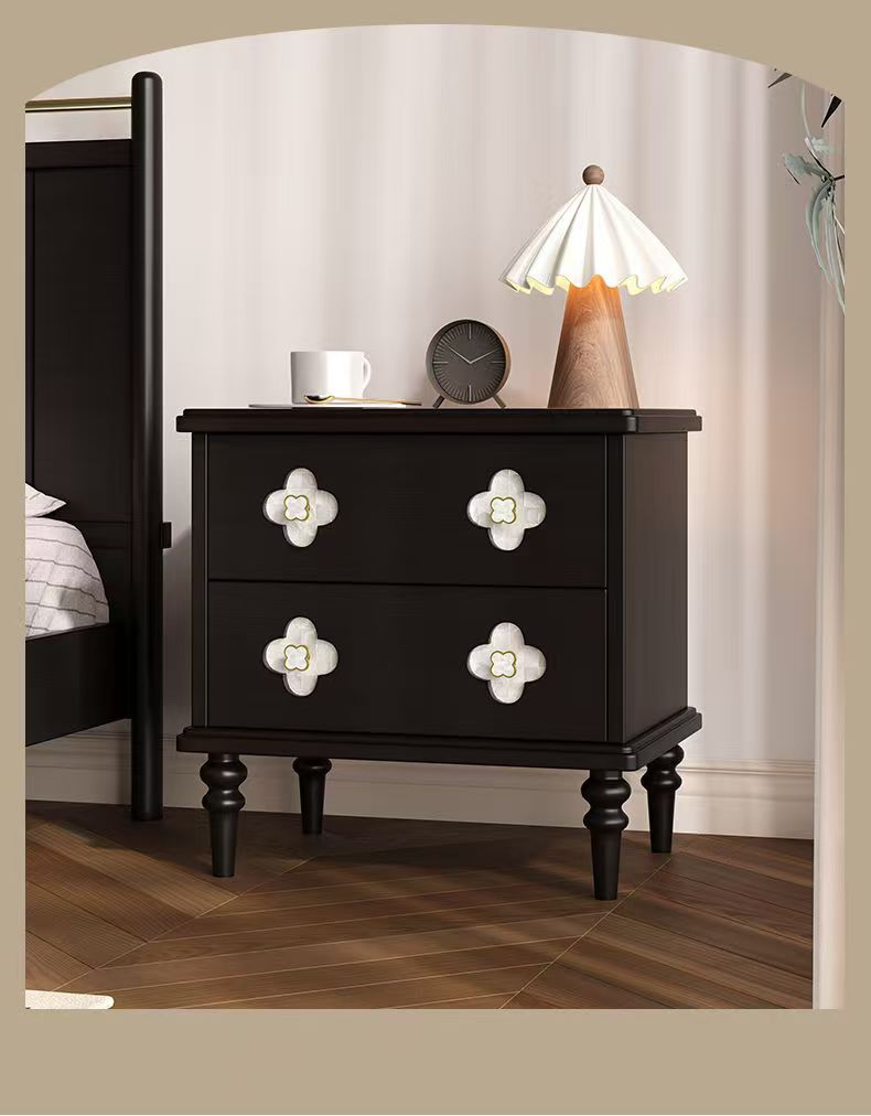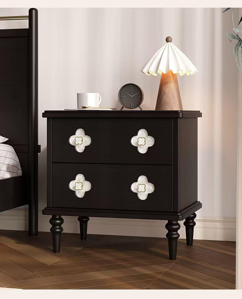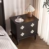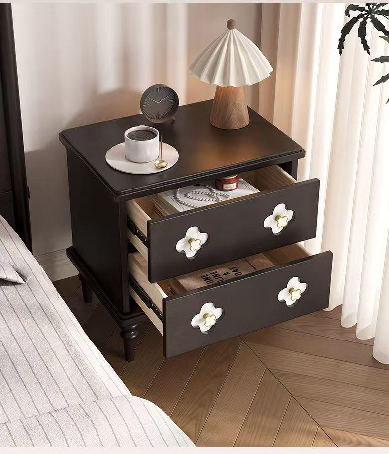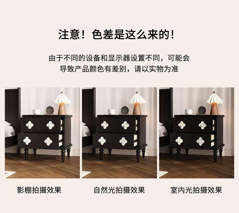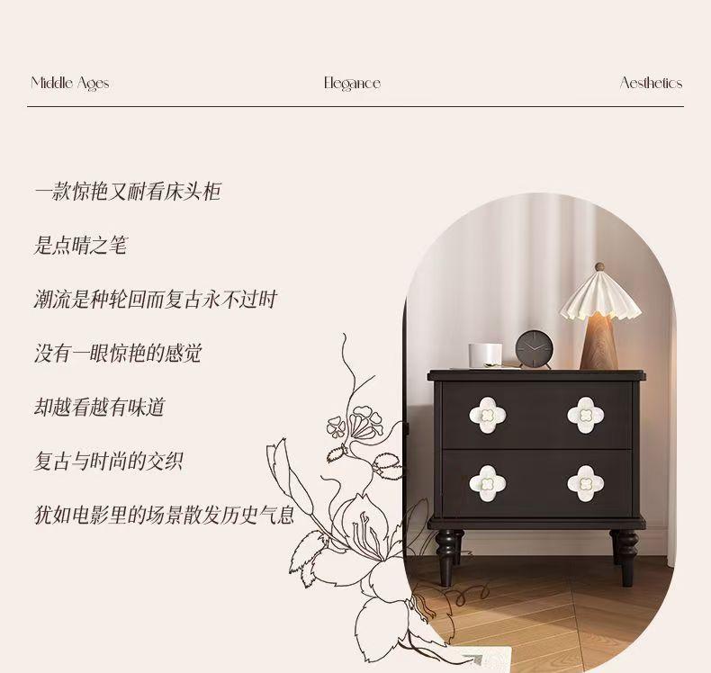 Mesita de noche retro de estilo francés, de madera maciza, pequeña, de almacenamiento, de estilo medio, color negro, mueble bajo para el hogar, mesita de noche para dormitorio