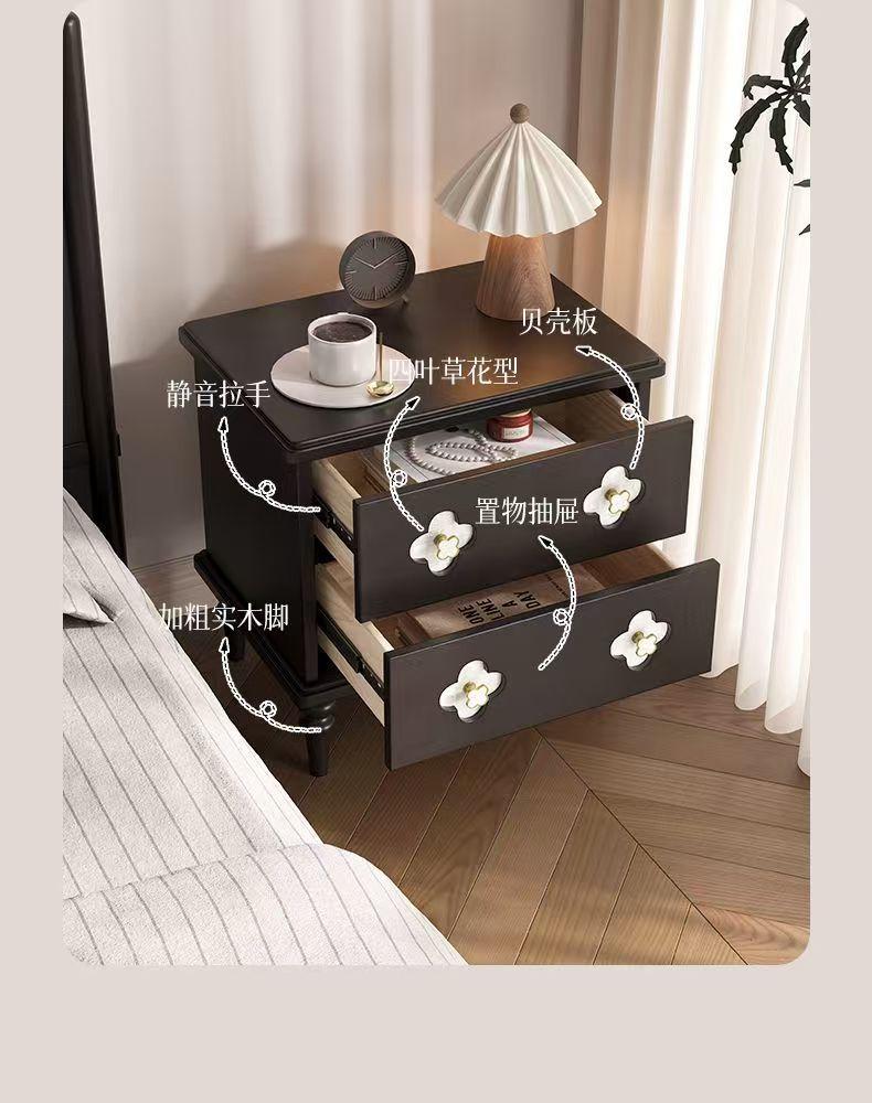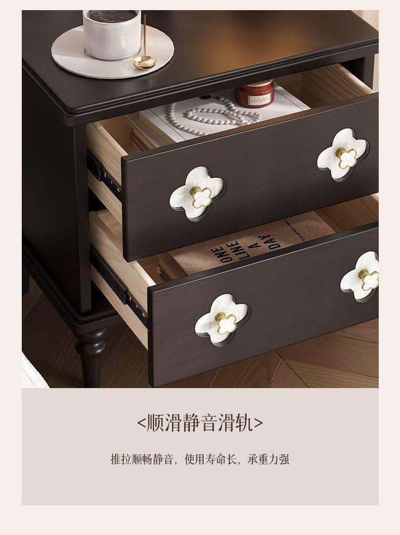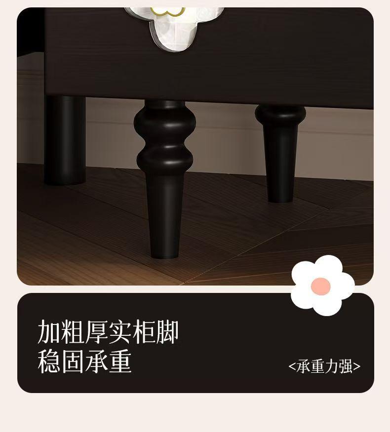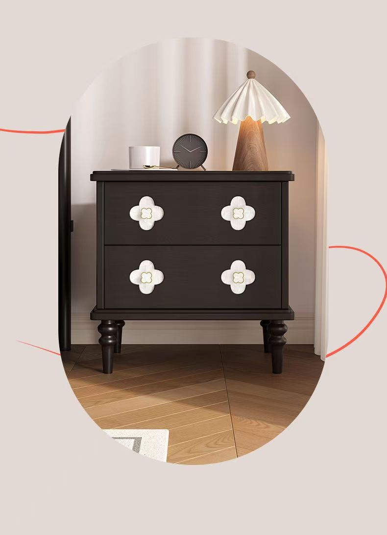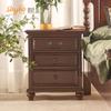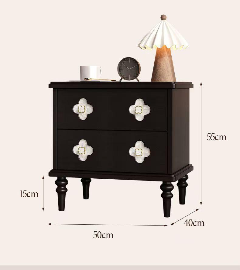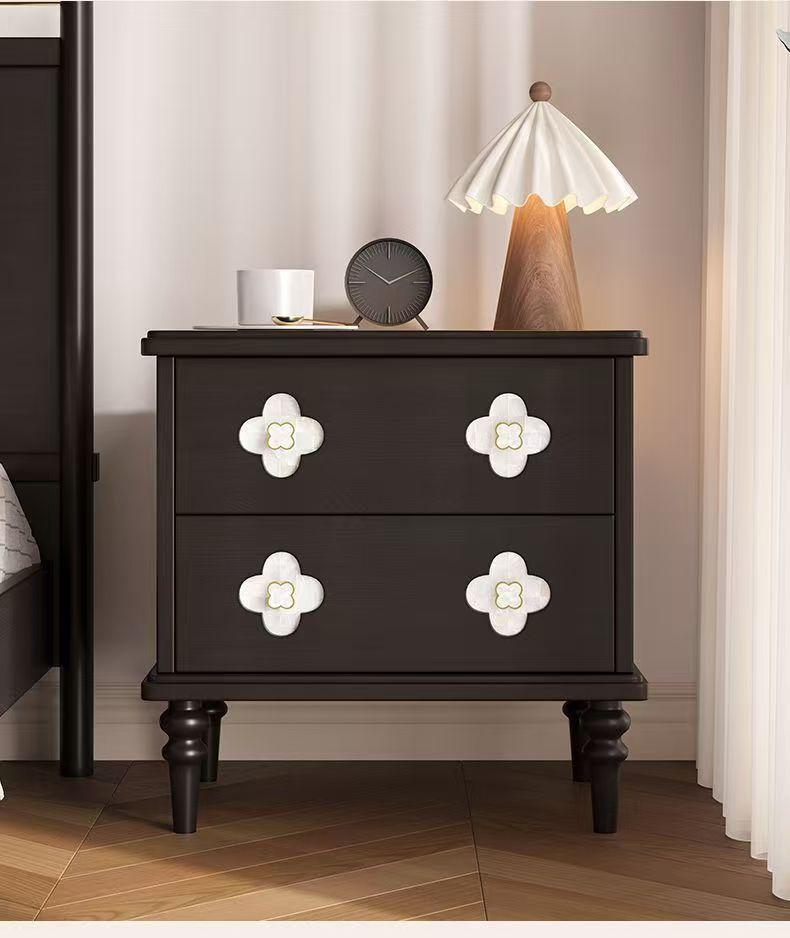 Mesita de noche retro de estilo francés, de madera maciza, pequeña, de almacenamiento, de estilo medio, color negro, mueble bajo para el hogar, mesita de noche para dormitorio