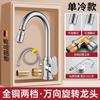 Grifo de Cocina Todo Cobre Agua Caliente y Fría Dos en Uno Fregadero Fregadero Ducha Antisalpicaduras Giratorio Universal Doméstico