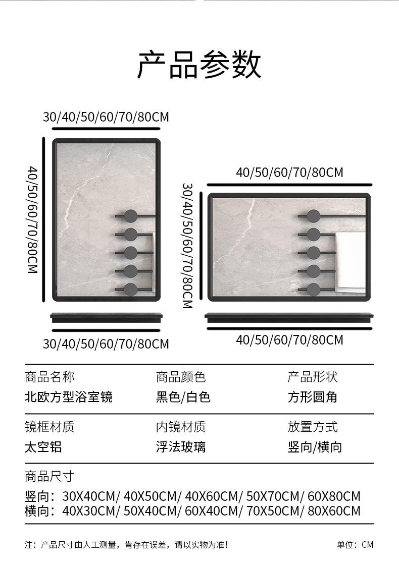 Aluminum square mirror 40x50cm (single mirror) black frame