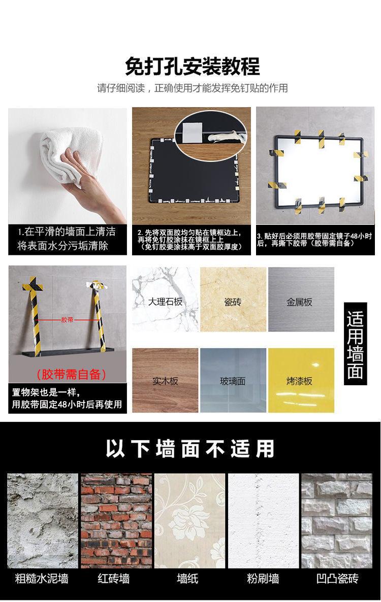 Espejo de baño Espejo de lavabo Espejo de maquillaje Montado en la pared Baño Montado en la pared Autoadhesivo Sin perforaciones Lavado de cara Vestidor Espejo de cristal