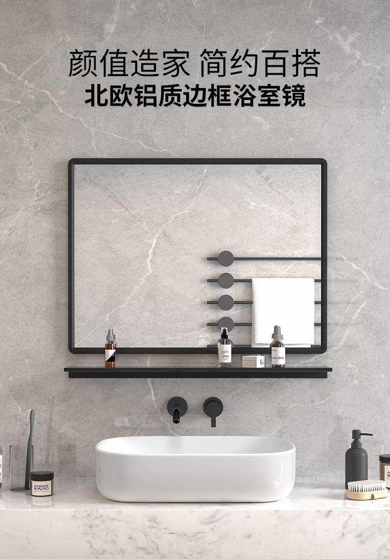 Aluminum square mirror 40x50cm (mirror + 40 shelves) black frame