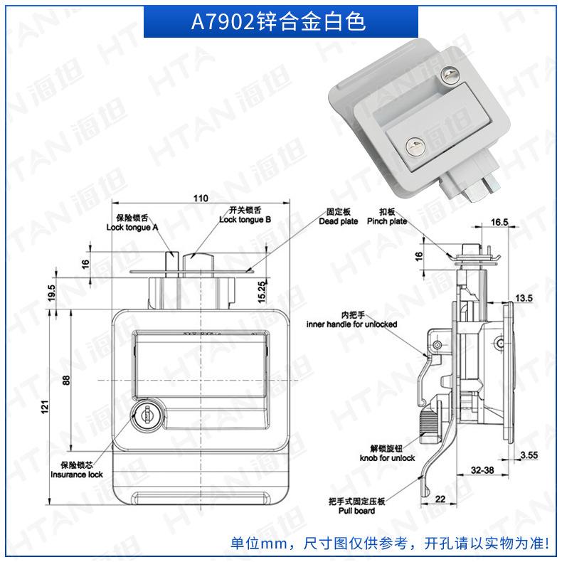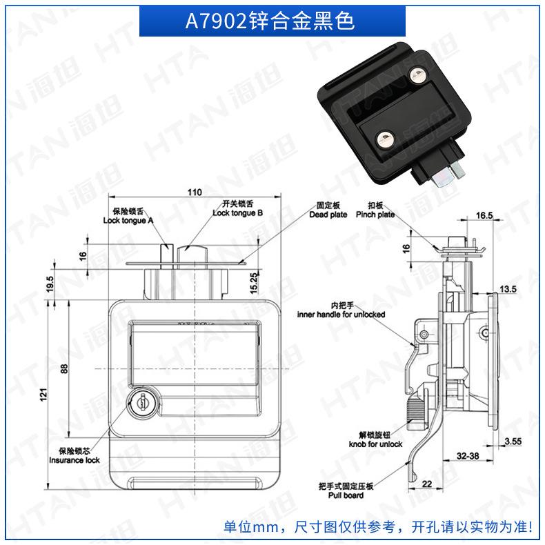 Cerradura de Cabina de Doble Apertura Interior y Exterior Rv3, Cerradura de Capó, Remolque de Viaje, Cerradura de Panel de Aleación de Zinc A7902 Transfronteriza
