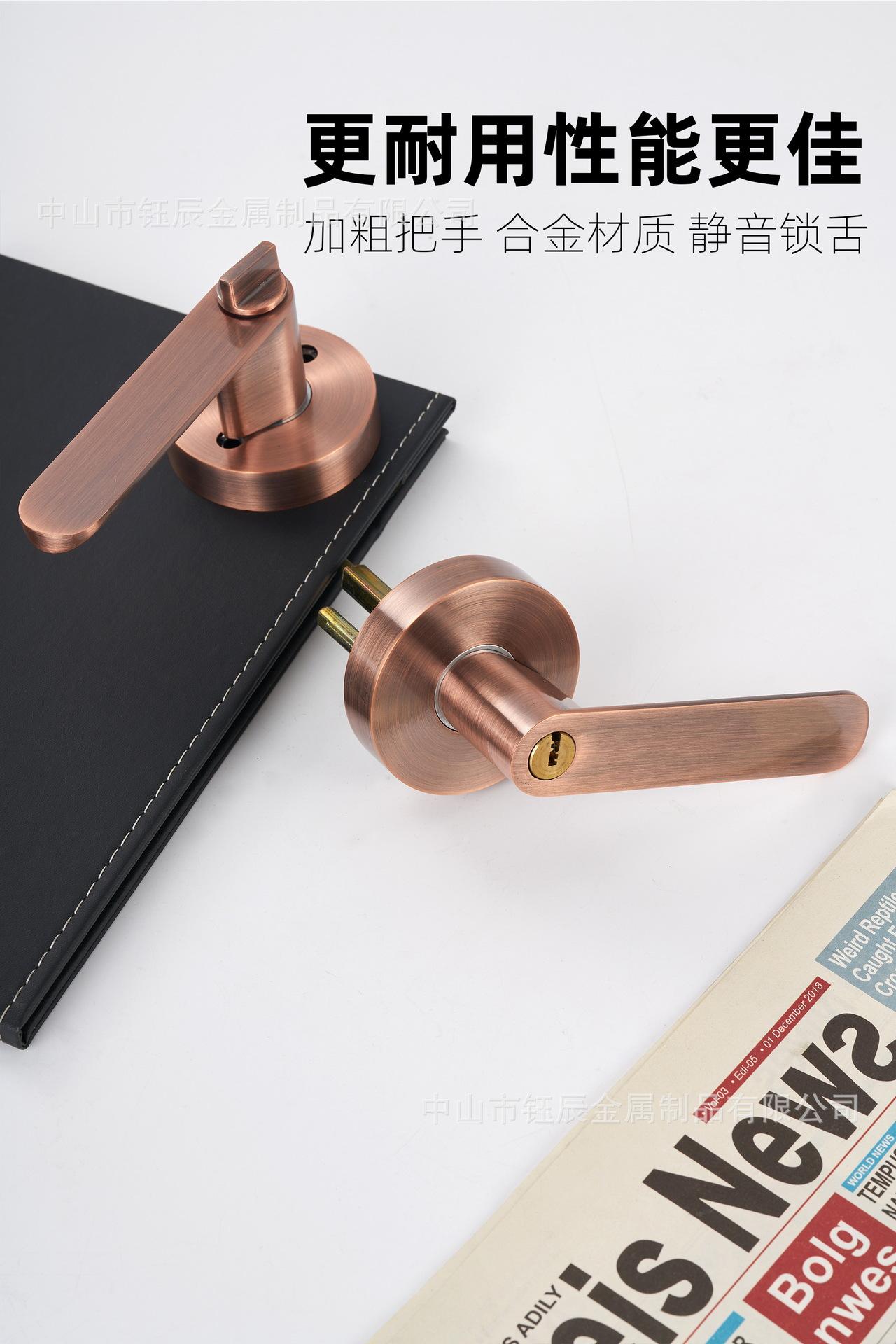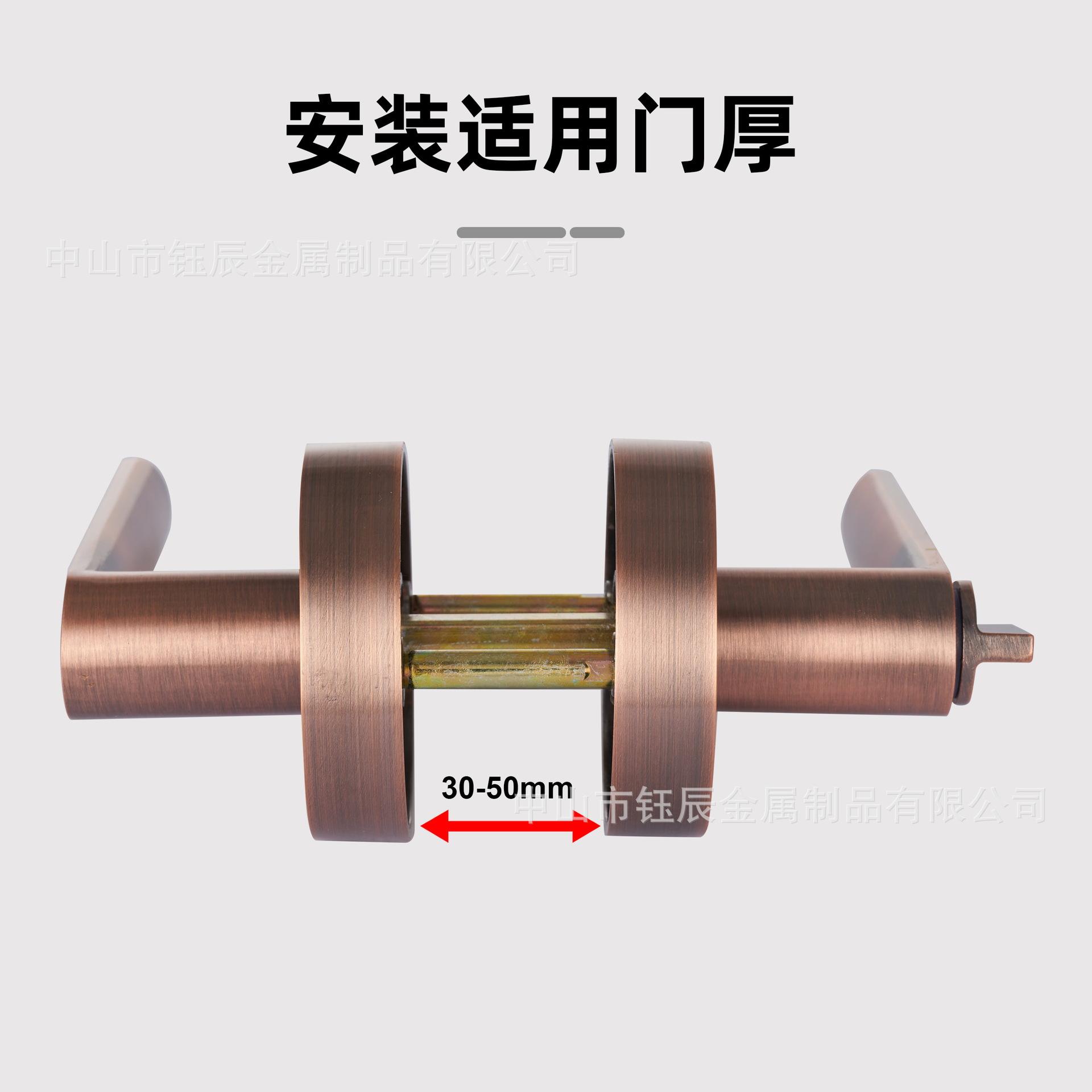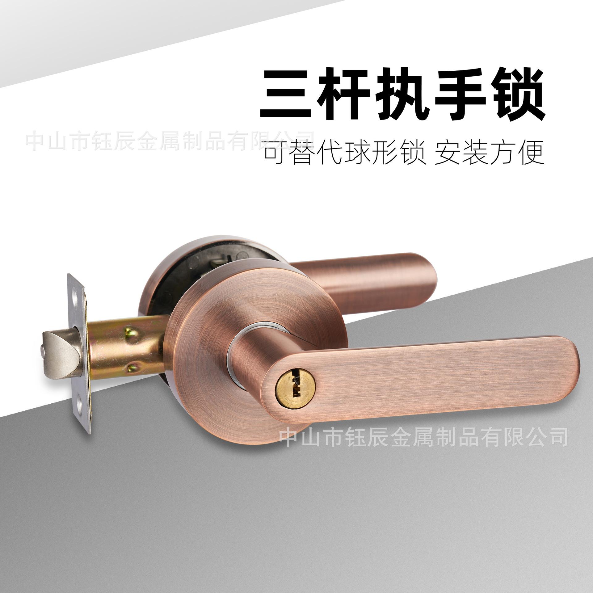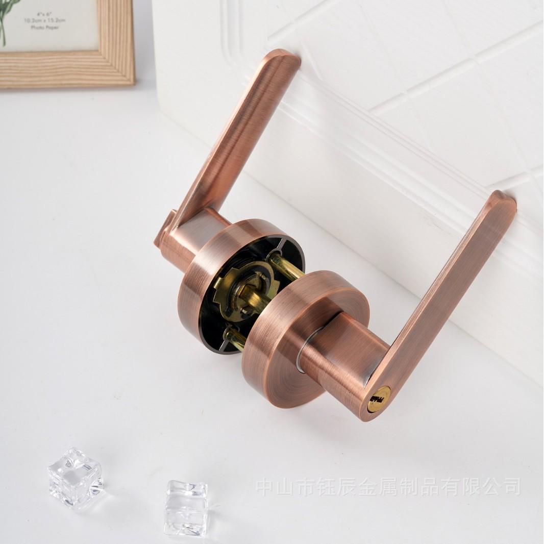 Cerradura de Manija de Tres Barras con Cubierta Redonda, Cerradura de Puerta Antigua Roja para Puertas de Dormitorio Interior, Cerradura de Puerta Simple, Tipo Universal