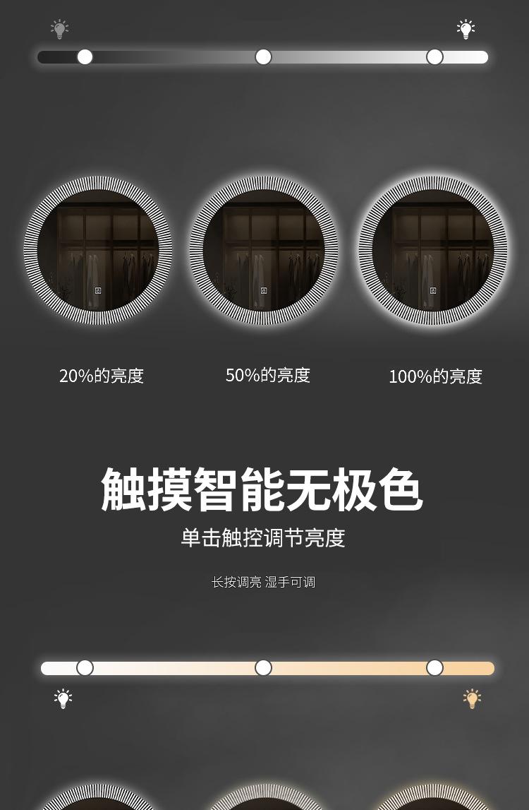 Espejo de Maquillaje Montado en la Pared Autoadhesivo Espejo Iluminado Redondo Espejo de Baño Luz LED Espejo de Baño Atenuación Táctil Transfronterizo