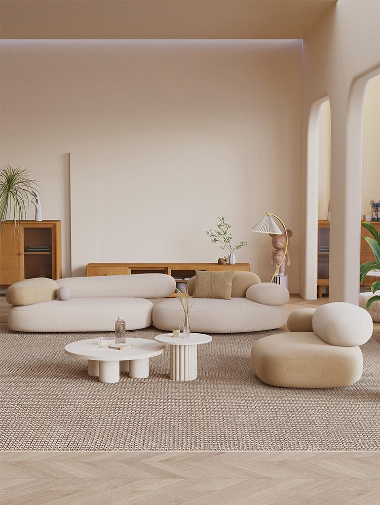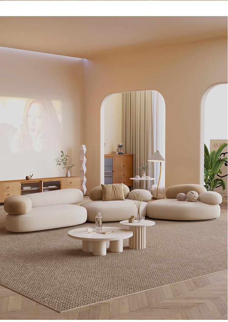 Lujo Ligero Área de Descanso Recepción Sofá de Tela Curvo Departamento Pequeño Sala de Estar Forma Irregular Modelo de Diseño de Muebles Famoso en Internet