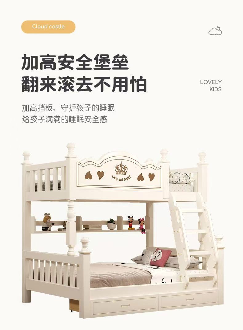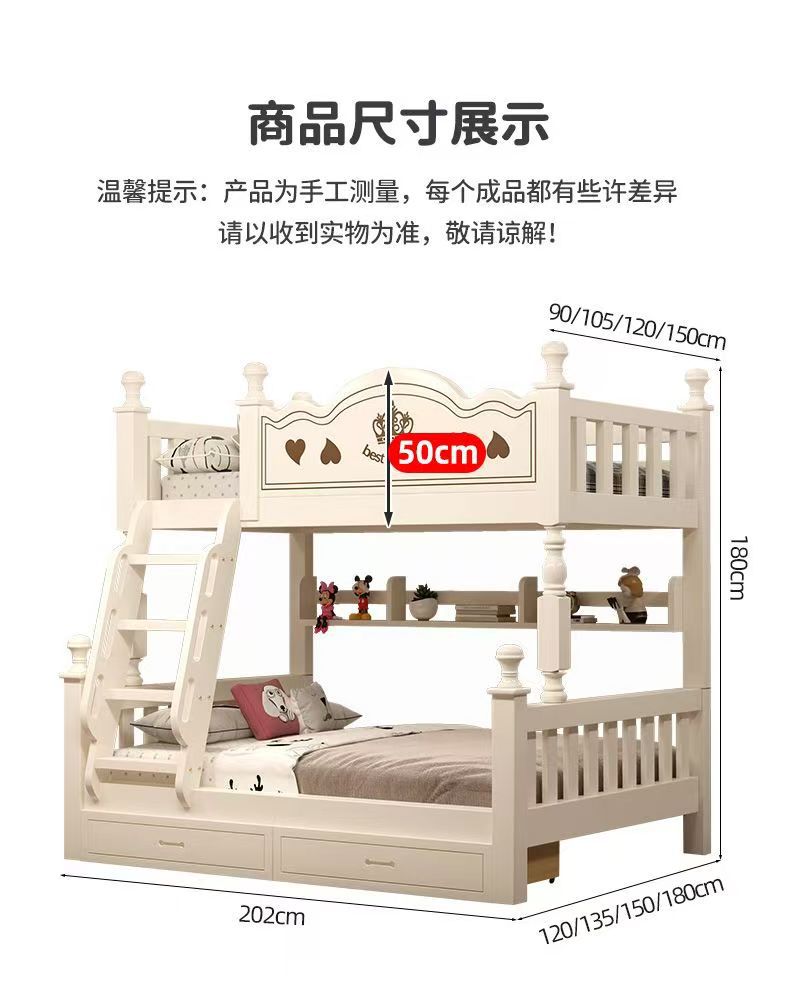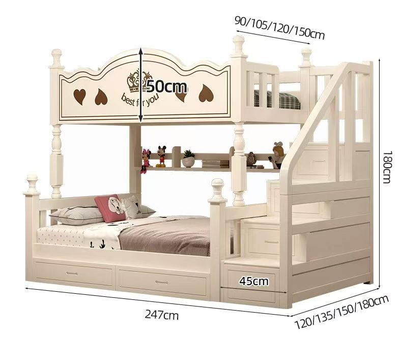 The upper bunk is 90cm wide and the lower bunk is 120cm wide, The upper bunk is 105cm wide and the lower bunk ...
