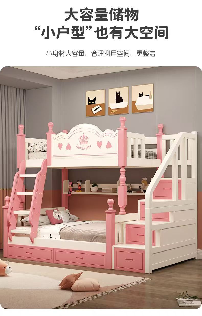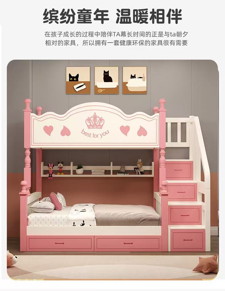 Pink and white ladder cabinet + bookshelf + double drawers + mattress + installation