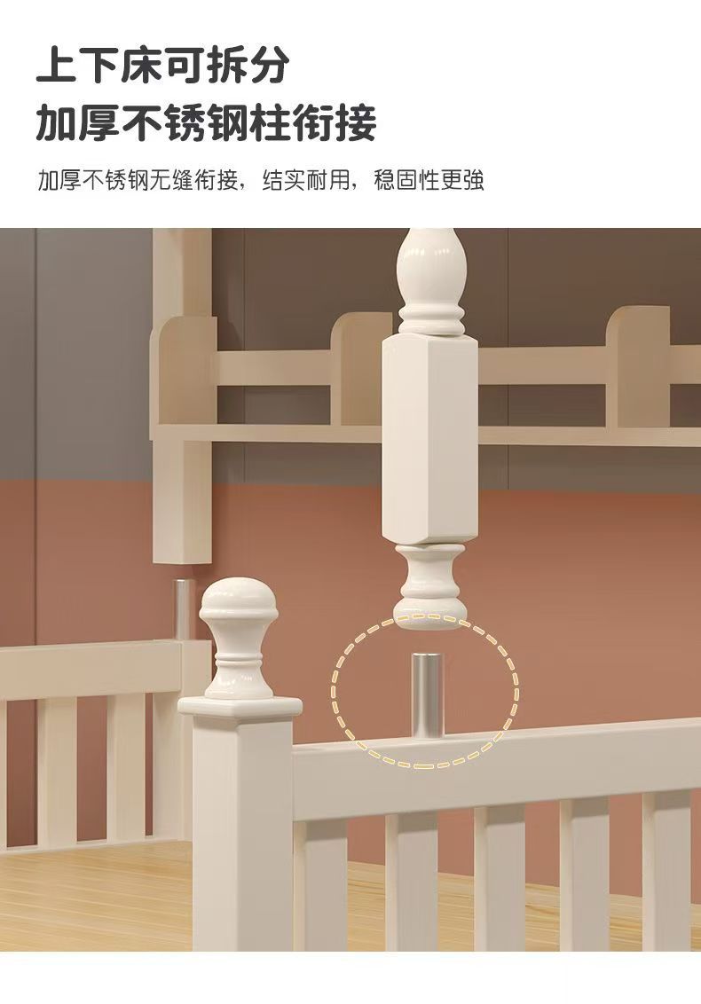 Cama Litera Madera Maciza Cama Alta y Baja Litera Dividida Cama de Madera Caucho Cama Infantil Cama Doble Cama Madre