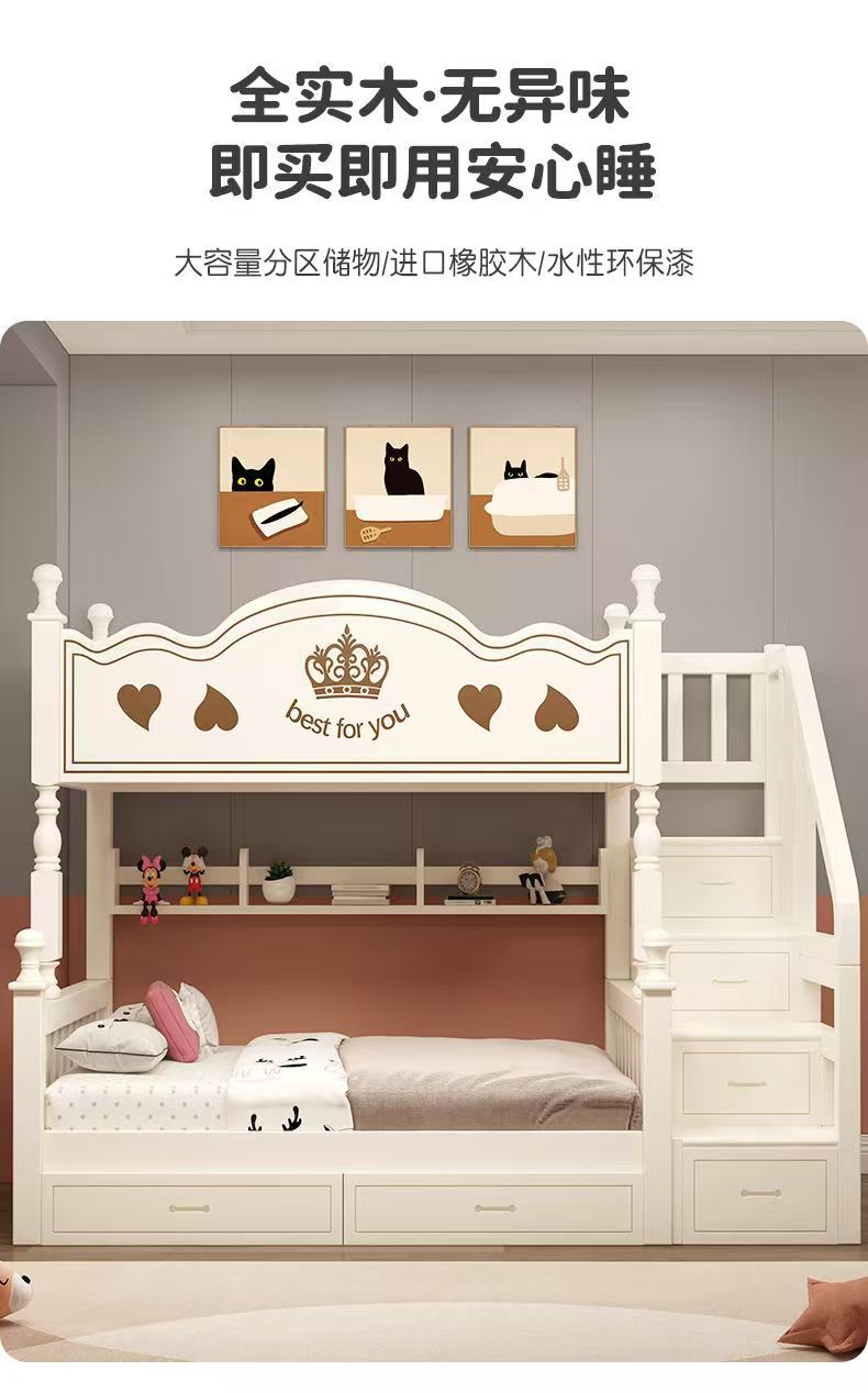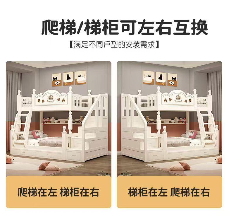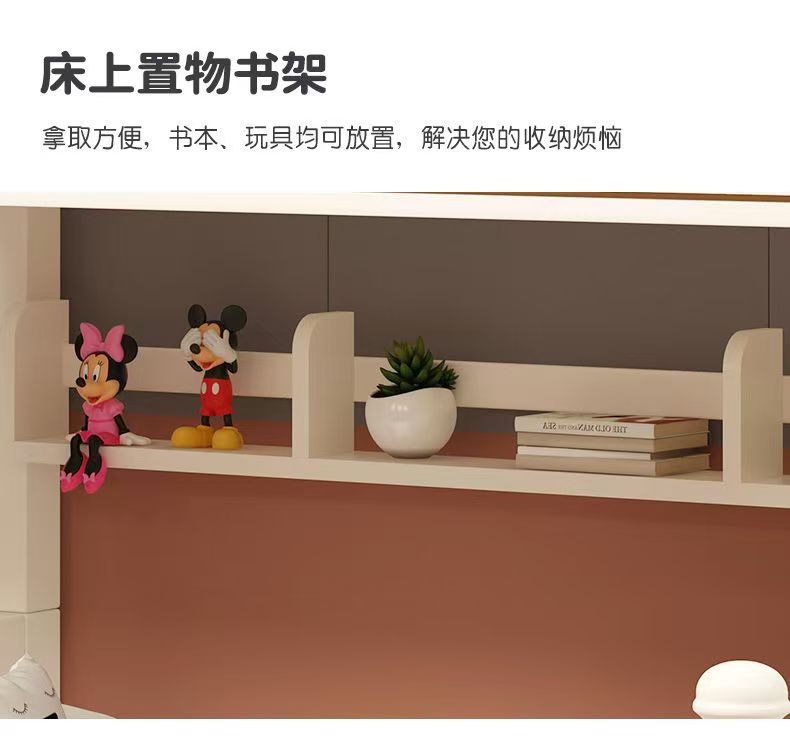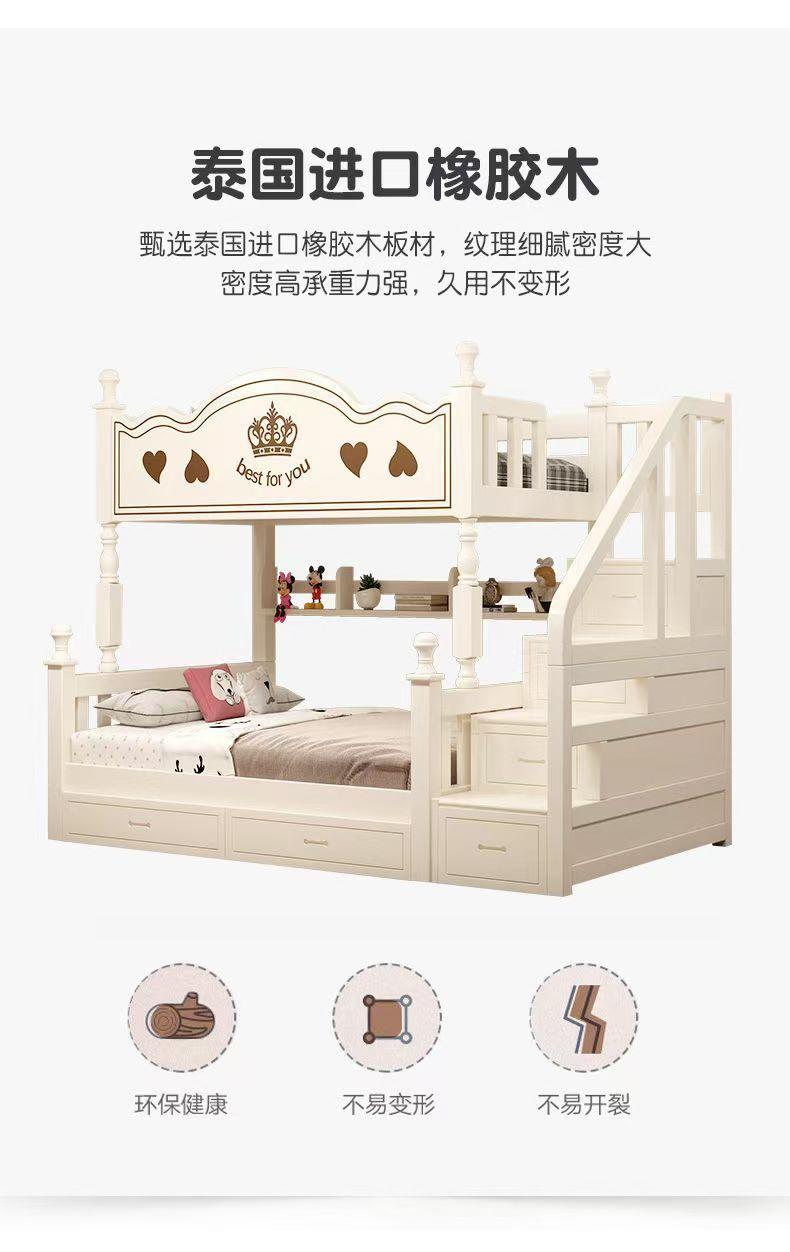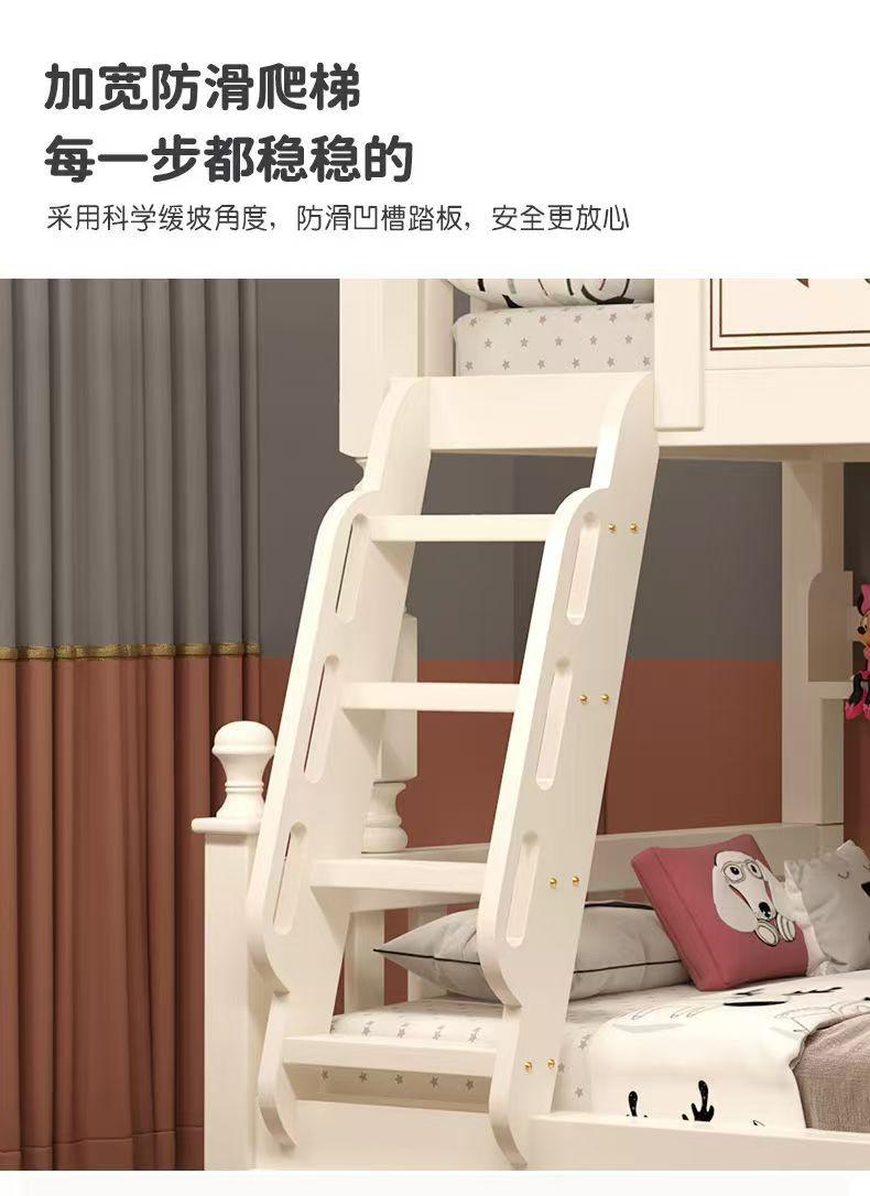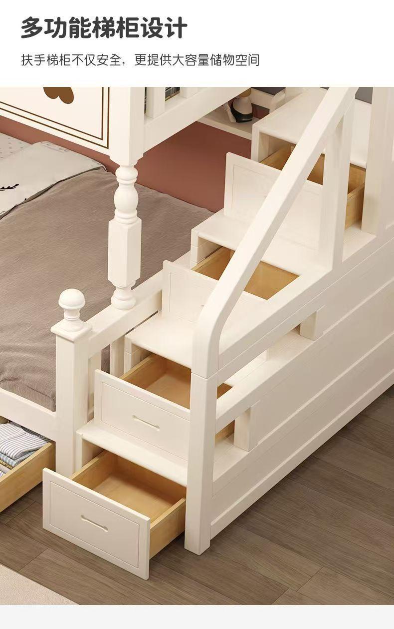 Warm white straight ladder style + bookshelf + double drawers + mattress + installation