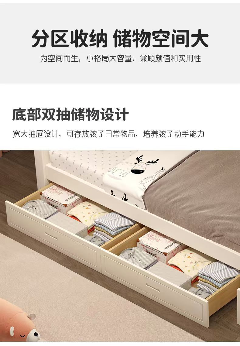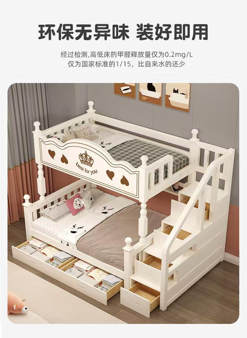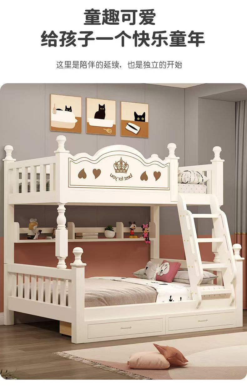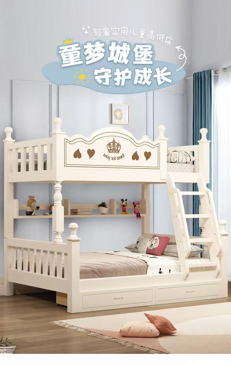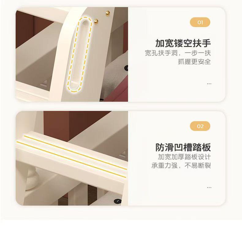 Warm white straight ladder style + bookshelf + double drawer + mattress + electric drill