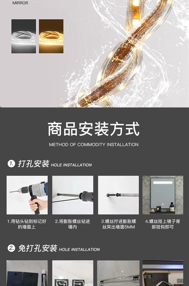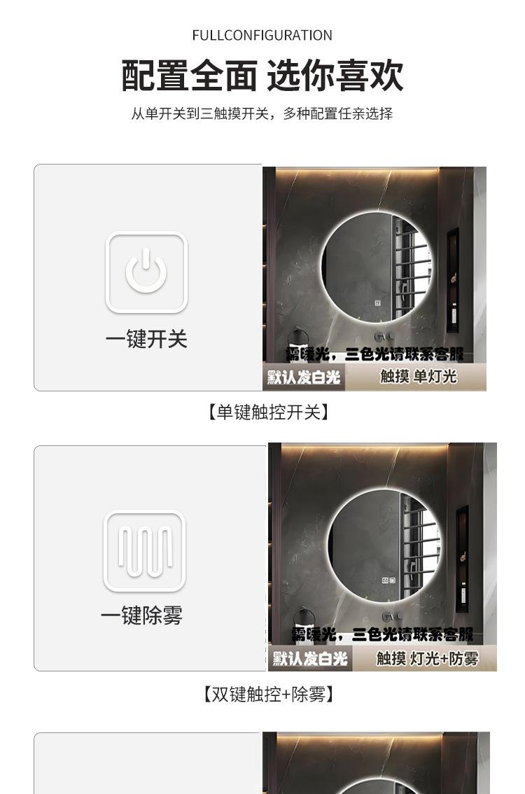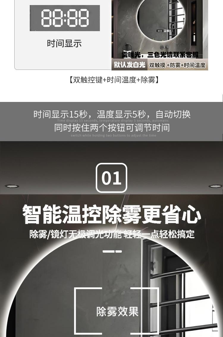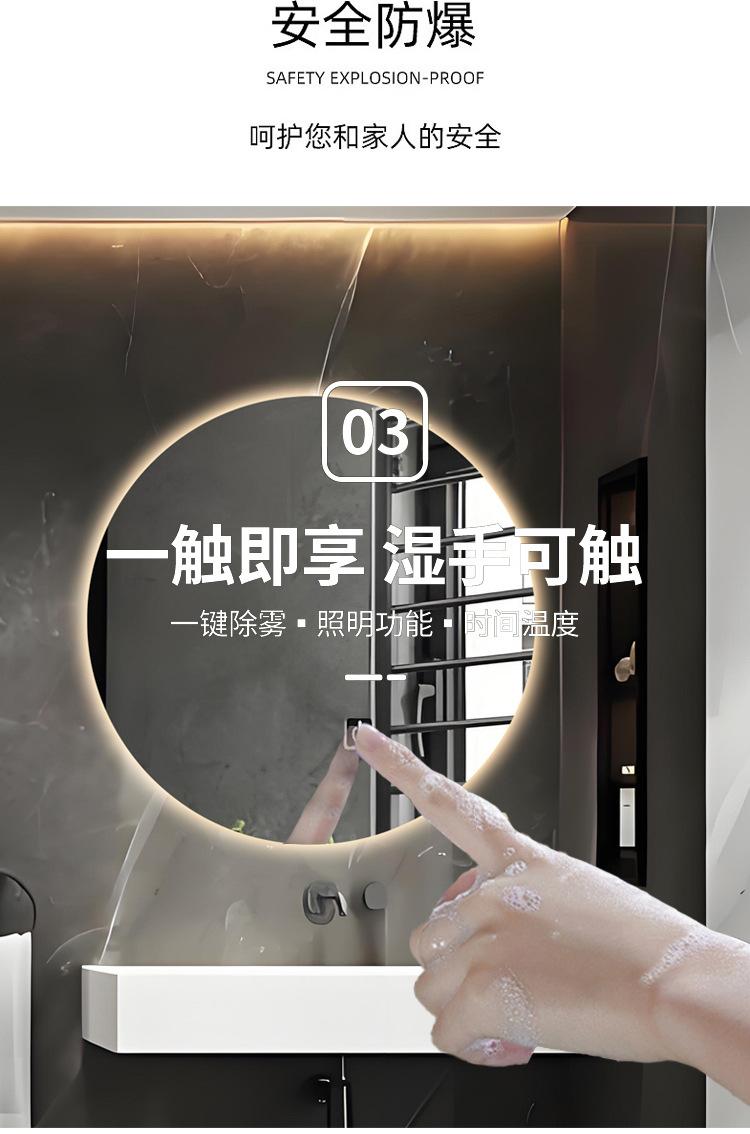 Espejo de Baño LED Redondo Anti-Vaho Espejo Inteligente de Baño con Luz Interruptor Táctil Especial Transfronterizo Espejo de Baño de Pared