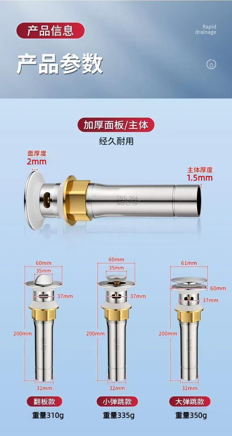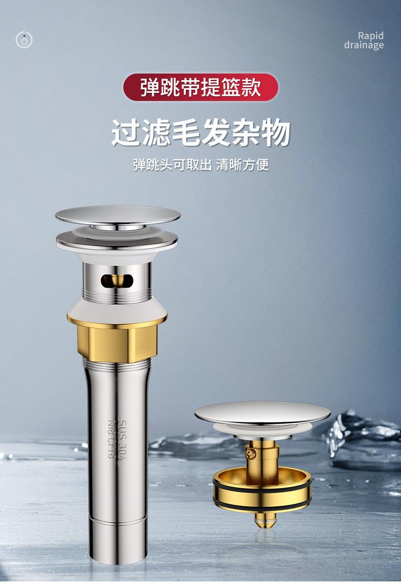 Desagüe de lavabo acero inoxidable núcleo de rebote lavabo filtro de presión antiolor anti-obstrucción cesta tapa de cerámica