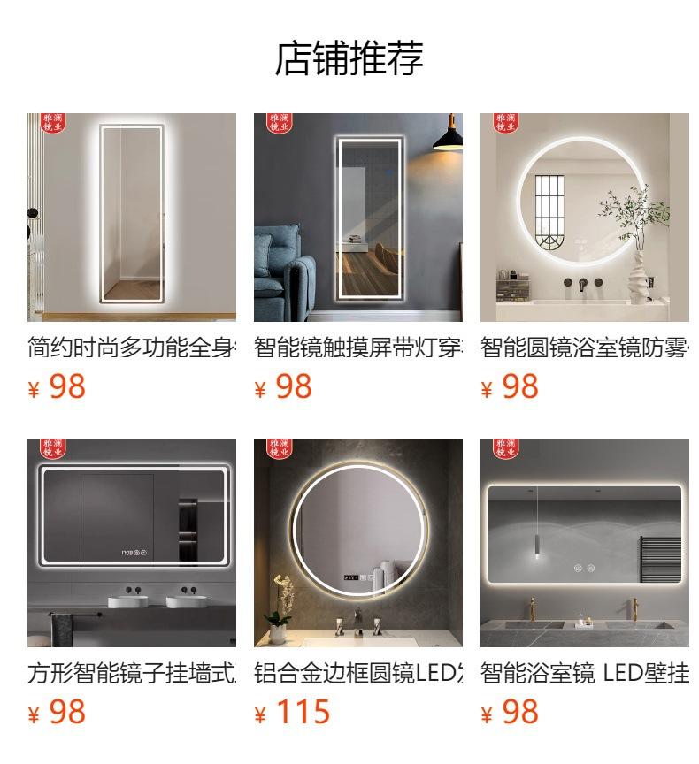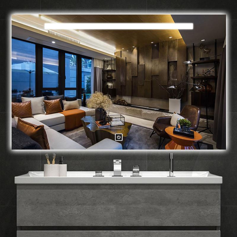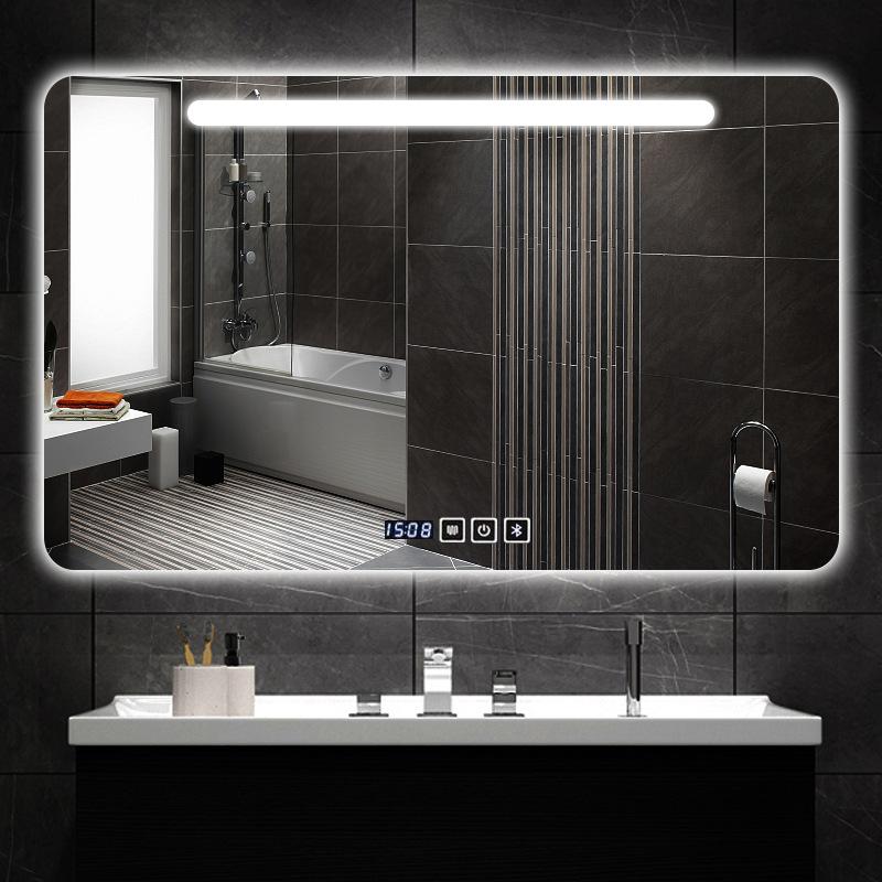 Dual touch white light + defogging + time and temperature + horizontal installation