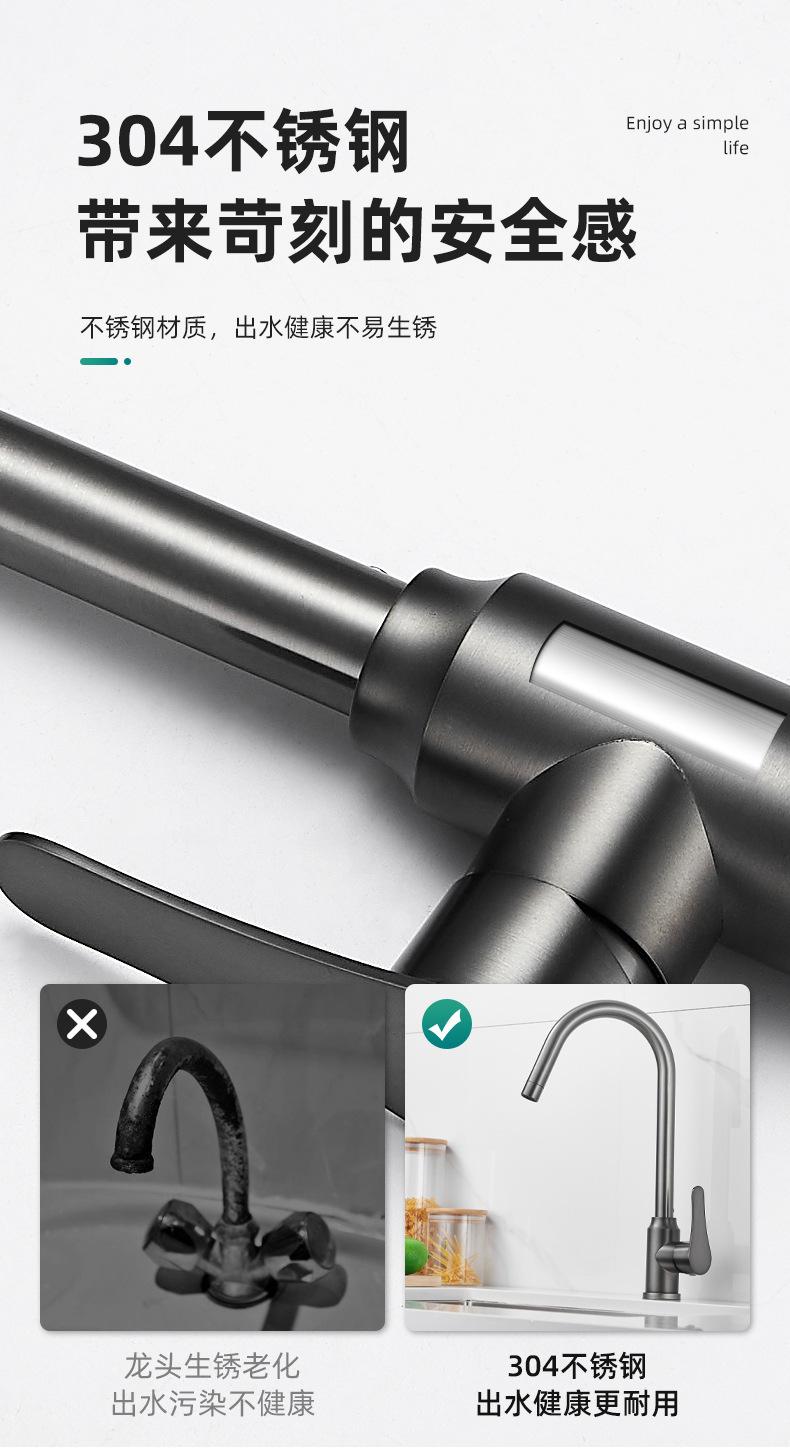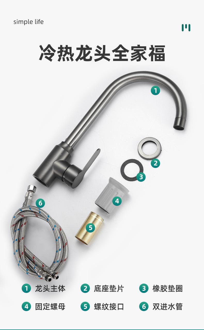 Gun gray v-curve [hot and cold style] kitchen faucet + 60cm water inlet pipe