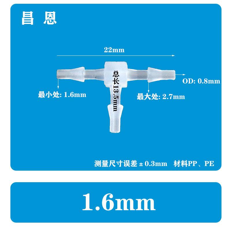 Conector de três vias tipo 1,6 mmT, mangueira de plástico, bico de água, acessórios de pagode, conexão rápida ao vivo, conexão de alta temperatura, material PP