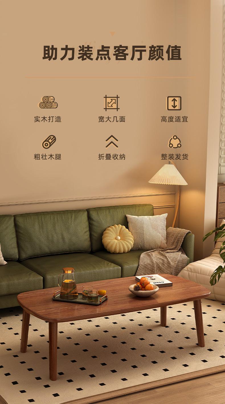 Mesa de centro para sala de estar, nueva mesa de té plegable de madera maciza, simple, moderna, para apartamento pequeño, casa de alquiler con mesa pequeña