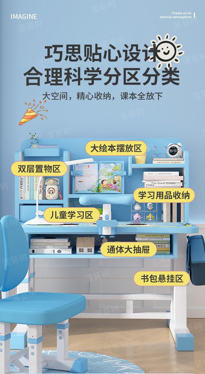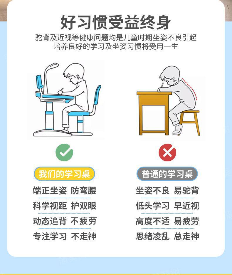 Escritorio de estudio para niños, escritorio para corregir la postura al sentarse, protección de cintura, escritorio y silla elevables combinados, escritorio y silla para niños.