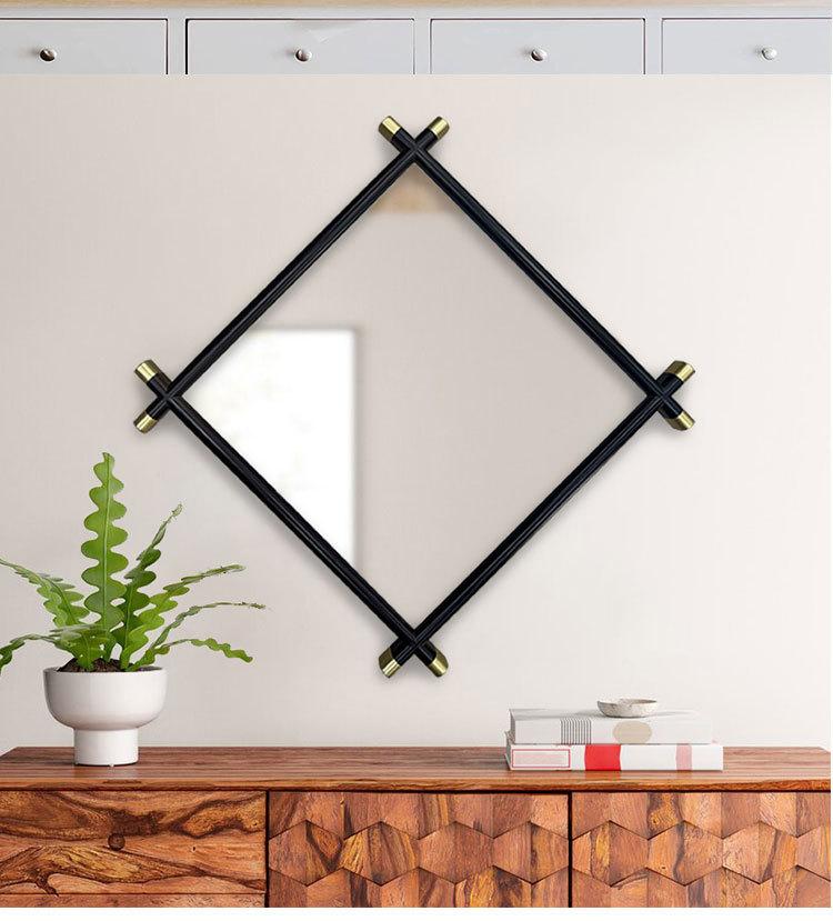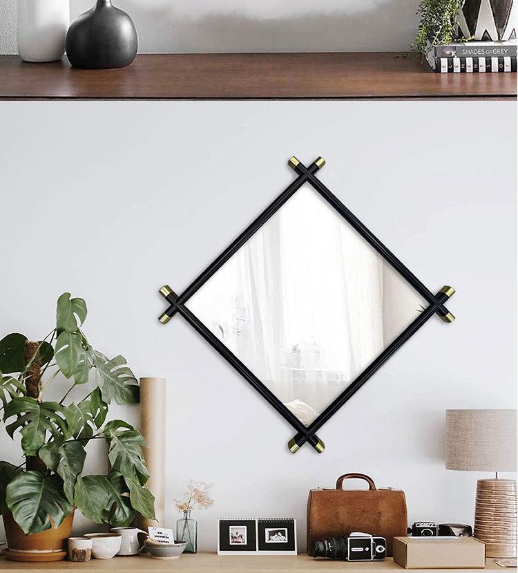 Nuevo Espejo de Vanidad Simple Romboidal Retro de Estilo Chino Montado en la Pared de Alta Definición a Prueba de Explosiones Espejo para Dormitorio de Niña