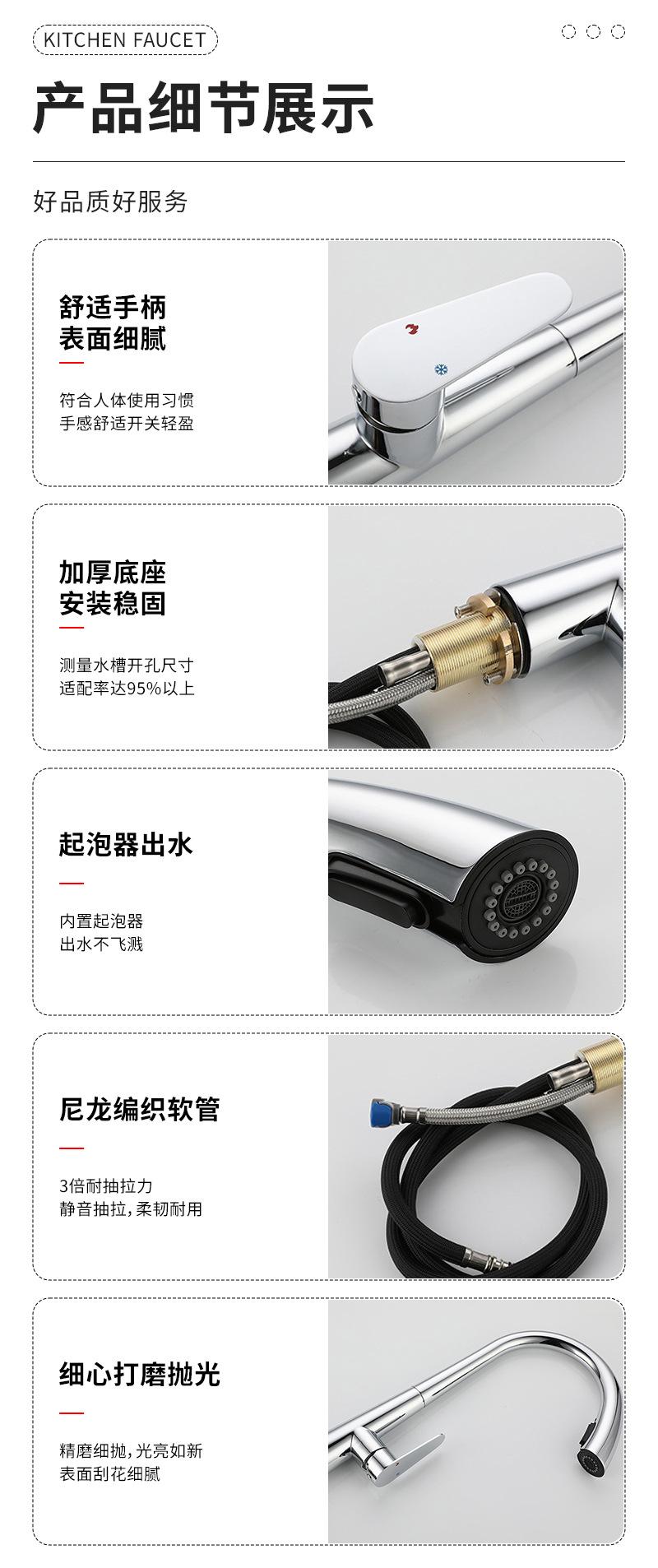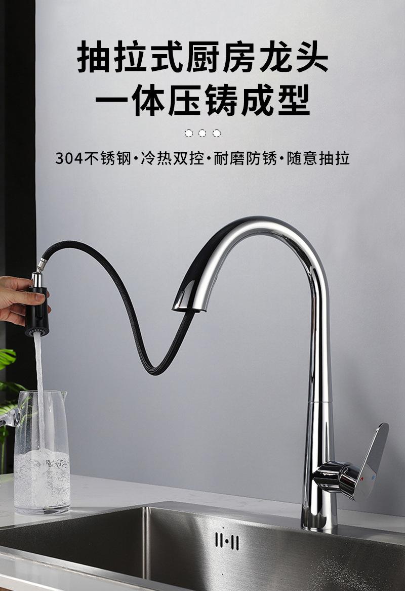 Grifo de Cocina Extraíble de Acero Inoxidable Sus304 de Venta Caliente Transfronterizo Multifuncional Telescópico Antisalpicaduras Grifo Caliente y Frío